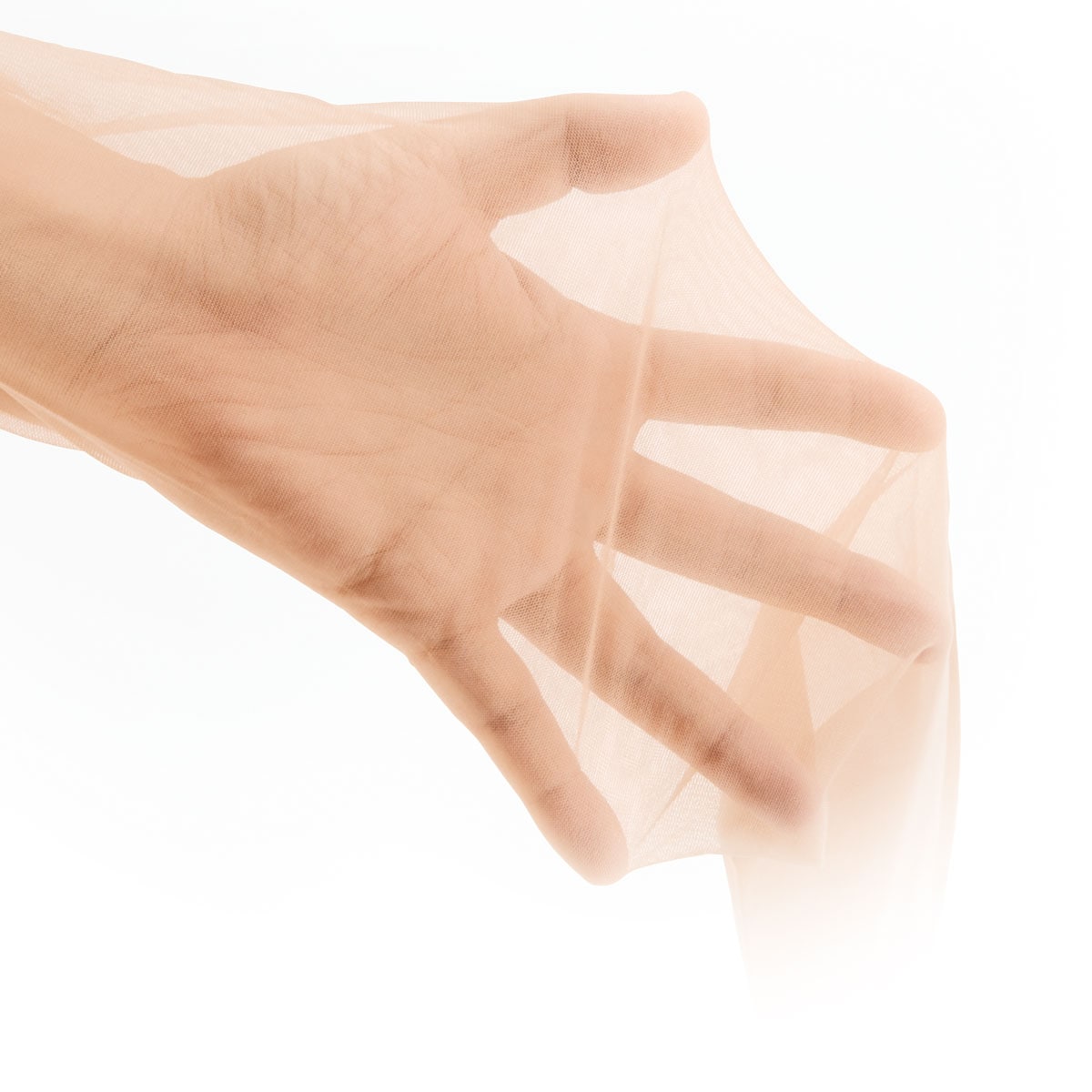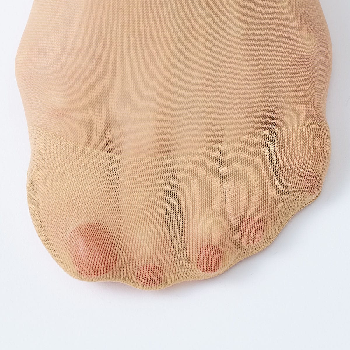 素肌感とほどよいフィット感が気持ちいい。さらっと薄手でムレや締め付け感が少なく、透明感のある履き心地です。素材の透け感の一例です(デニール数によって異なります)