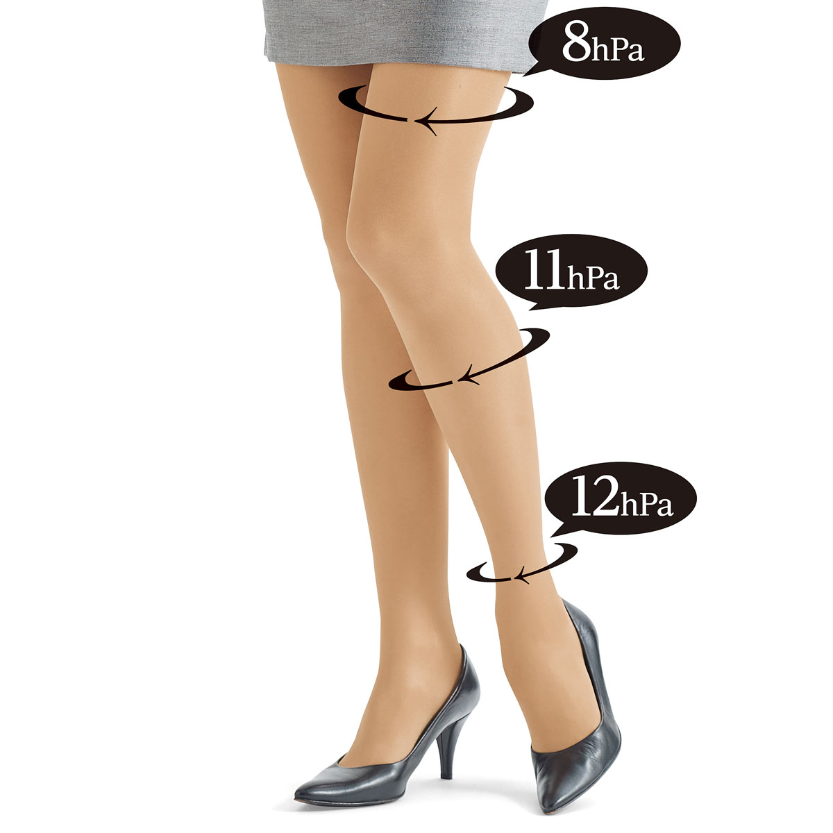 上品な光沢とソフトな引き締め感でキレイな脚を演出する着圧・弾性パンスト同色2足組