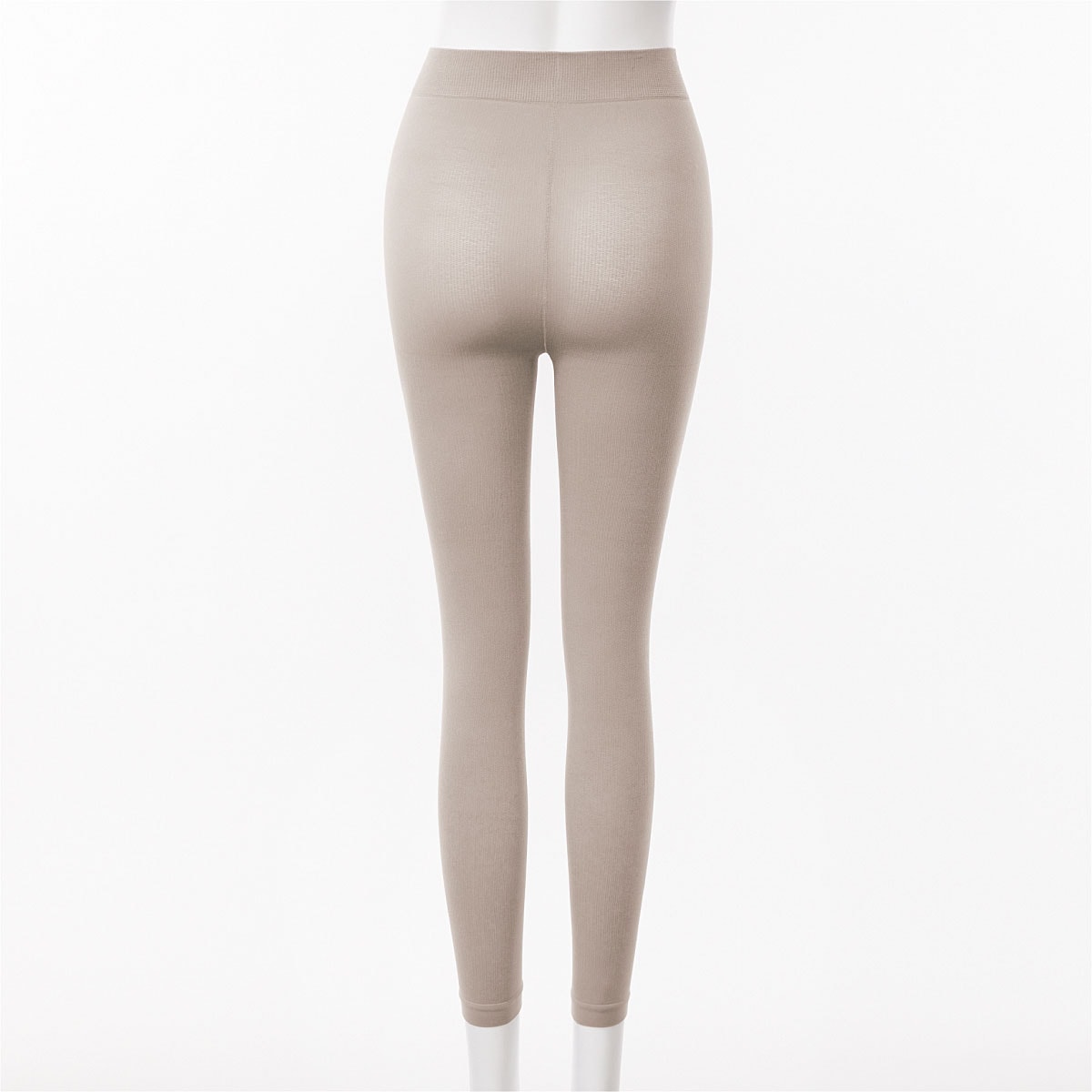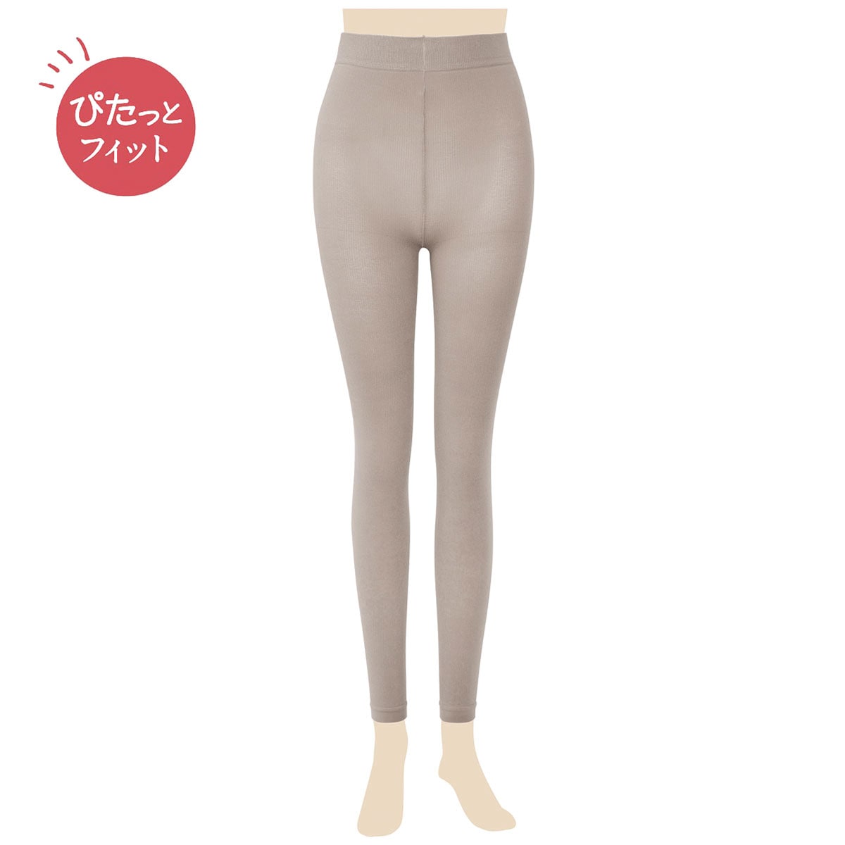 強力な引き締め感で、しっかり防寒する8~10分丈レギンス。厚地すぎず、表面はすべりのよいナイロン素材なので、アウターとの相性も◎! グレージュ