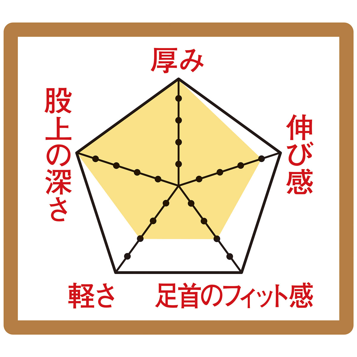 高いストレッチ性でぐーんとよく伸びてやさしくフィット。ウエストの締め付け感がなくラクチン。