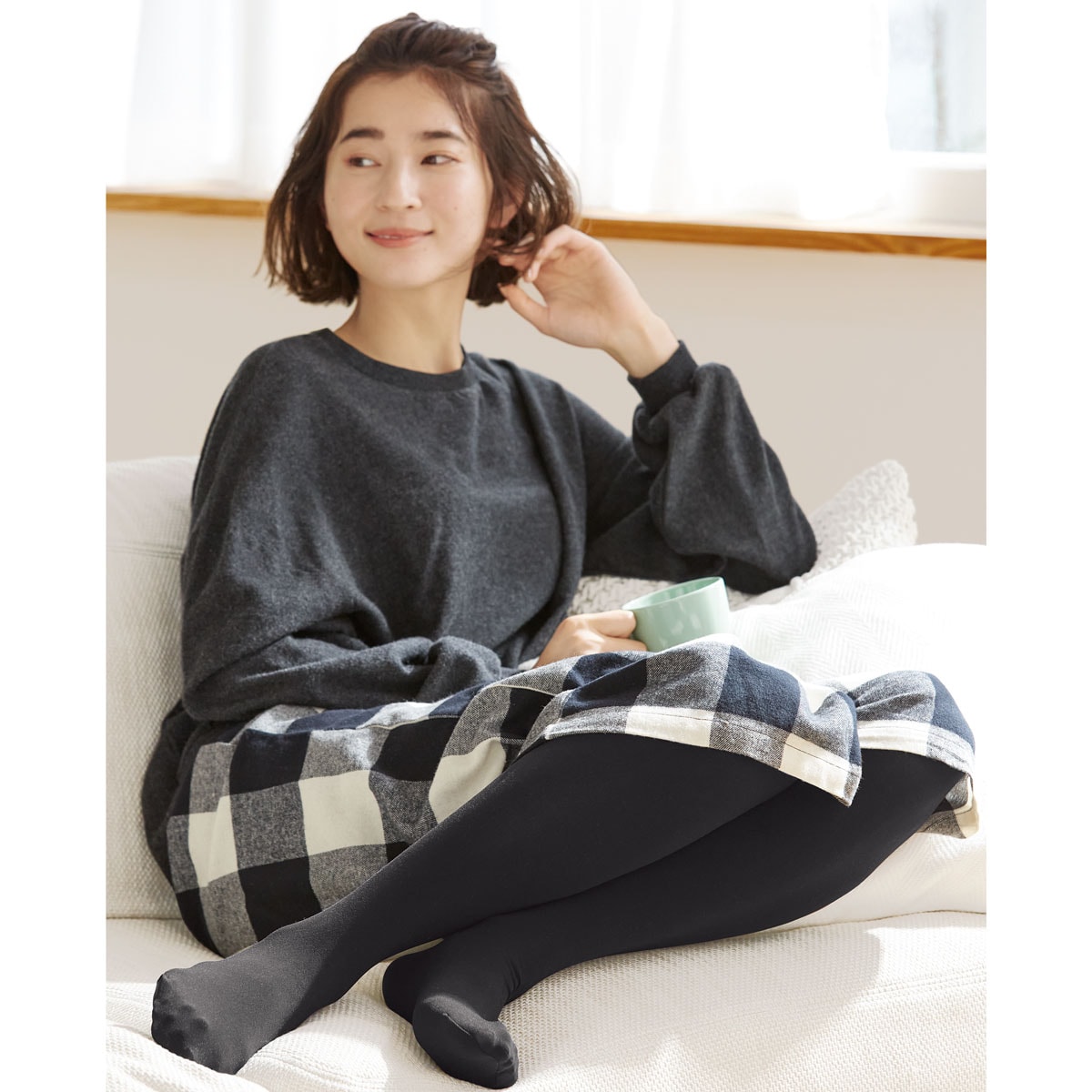 ひざを曲げてもしゃがんでも突っ張らず、まるで履いてないみたい!ウエストまわりも伸び伸びのゆったり感で、座ってもおなかにくい込みにくいスゴ伸びタイツです。動き回る家事やリラックスタイムのどんなポーズも自由自在。一度履いたらクセになる着用感をご堪能ください。■レギンスもあります(PK-264)