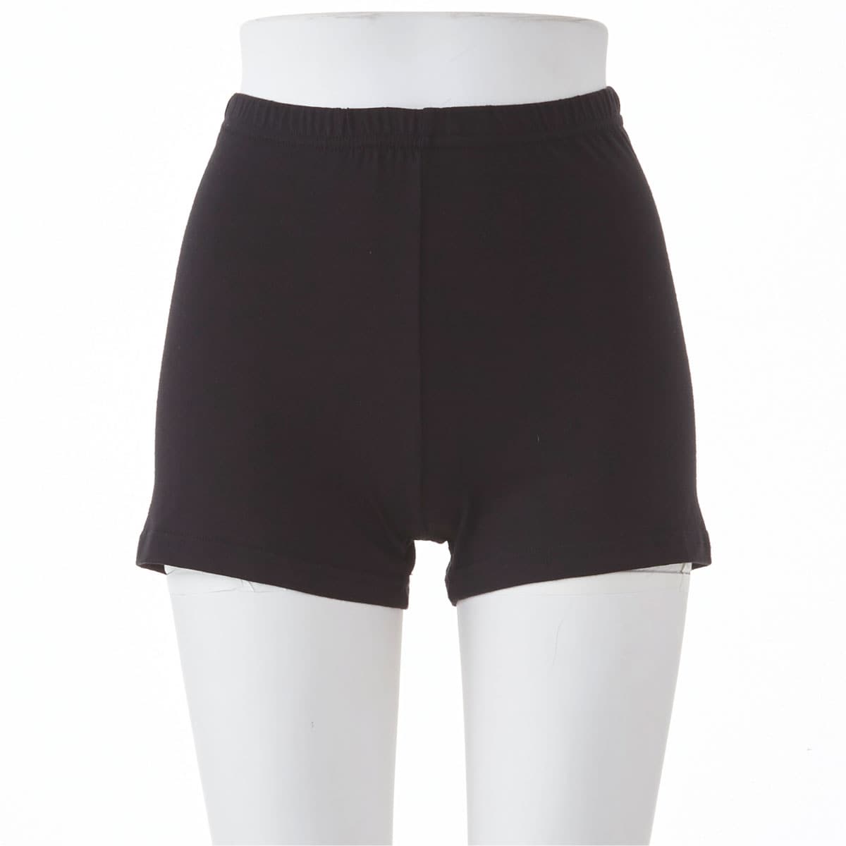 綿混ストレッチで肌あたりやさしく、よく伸びてラク!お腹すっぽり安心の1分丈スパッツブラック