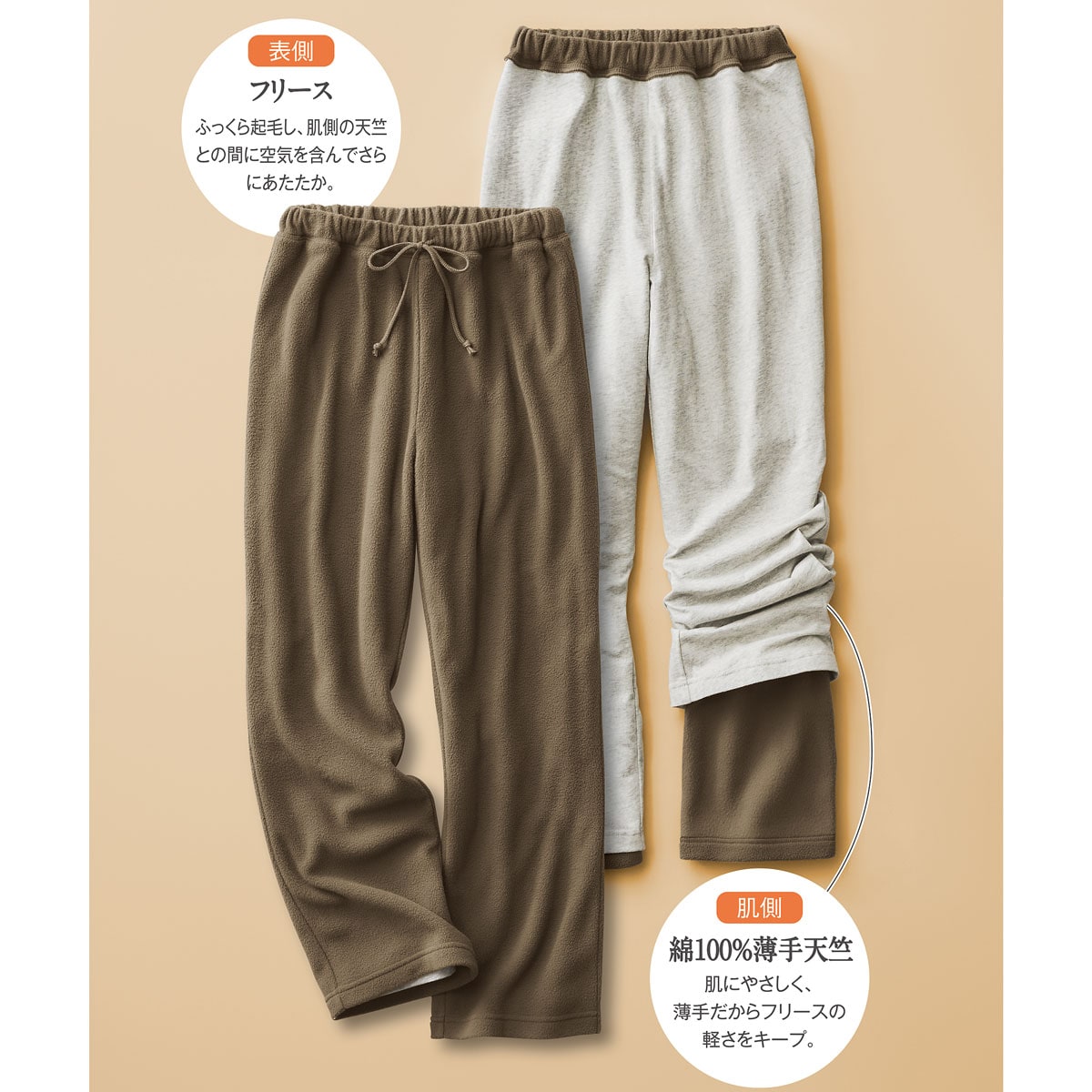 あったか裏綿フリースパンツ(お肌に優しい)