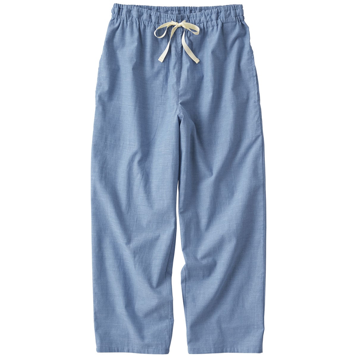 足首が見える8分丈で足さばきがいいっ!さらっと薄手でやわらかなシャンブレー素材。夏のお部屋着コーデが楽しくなる、ラク&可愛い綿100%パンツ