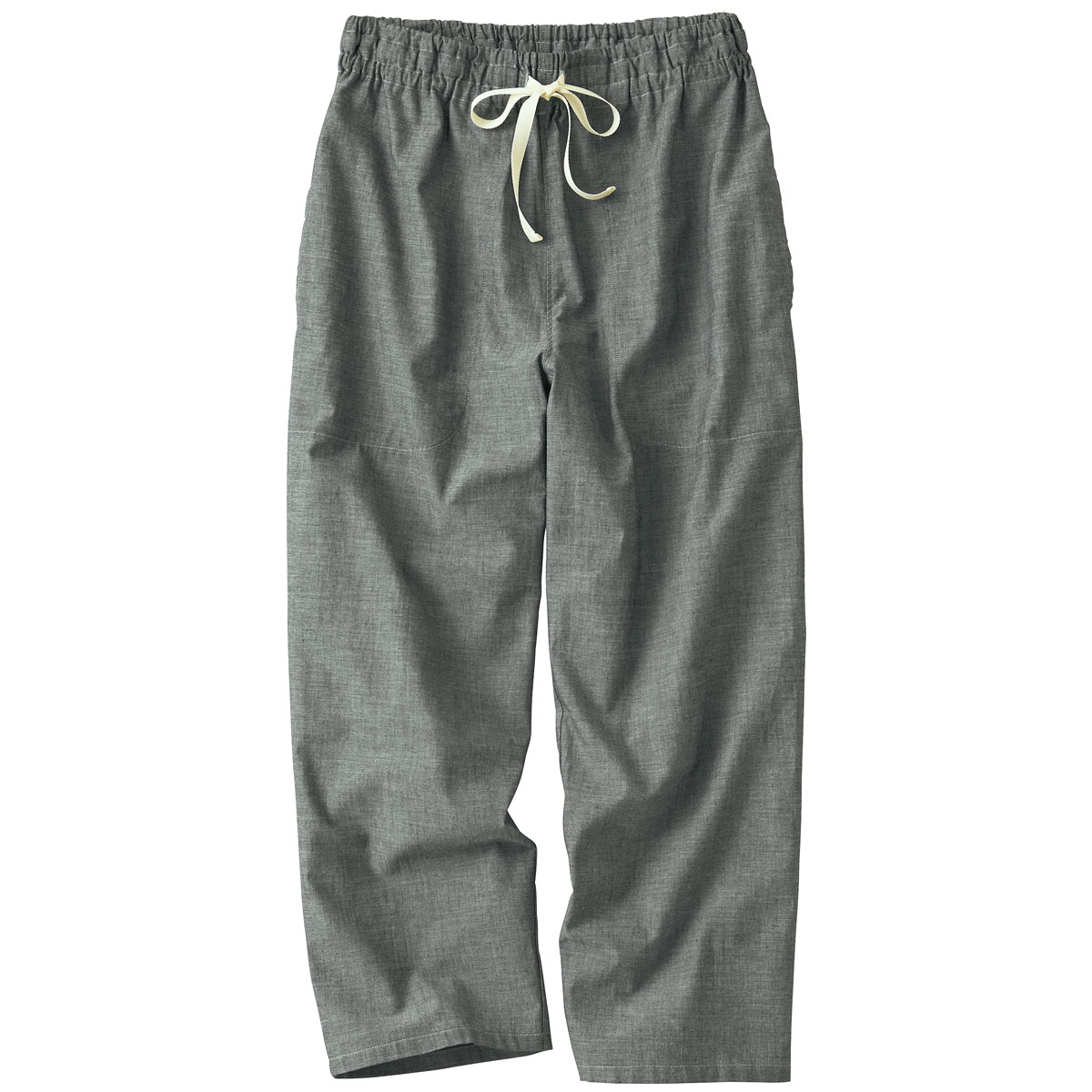 ※伸縮性のないシャツ生地なので、ゆったりはきたい方は1サイズ大きめをおすすめします。■〔織物〕綿100%(シャンブレー・先染)●左右ポケット●ウエストはゴム&綾テープ仕様●カンボジア製【綿100%】 【ウエストゴム取替OK】 【生地厚指数1】