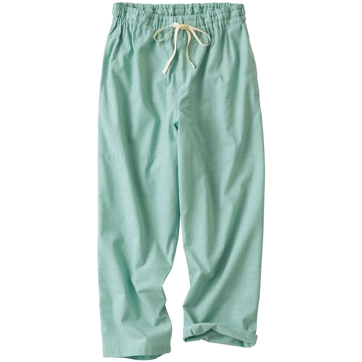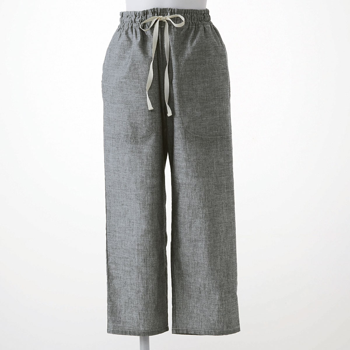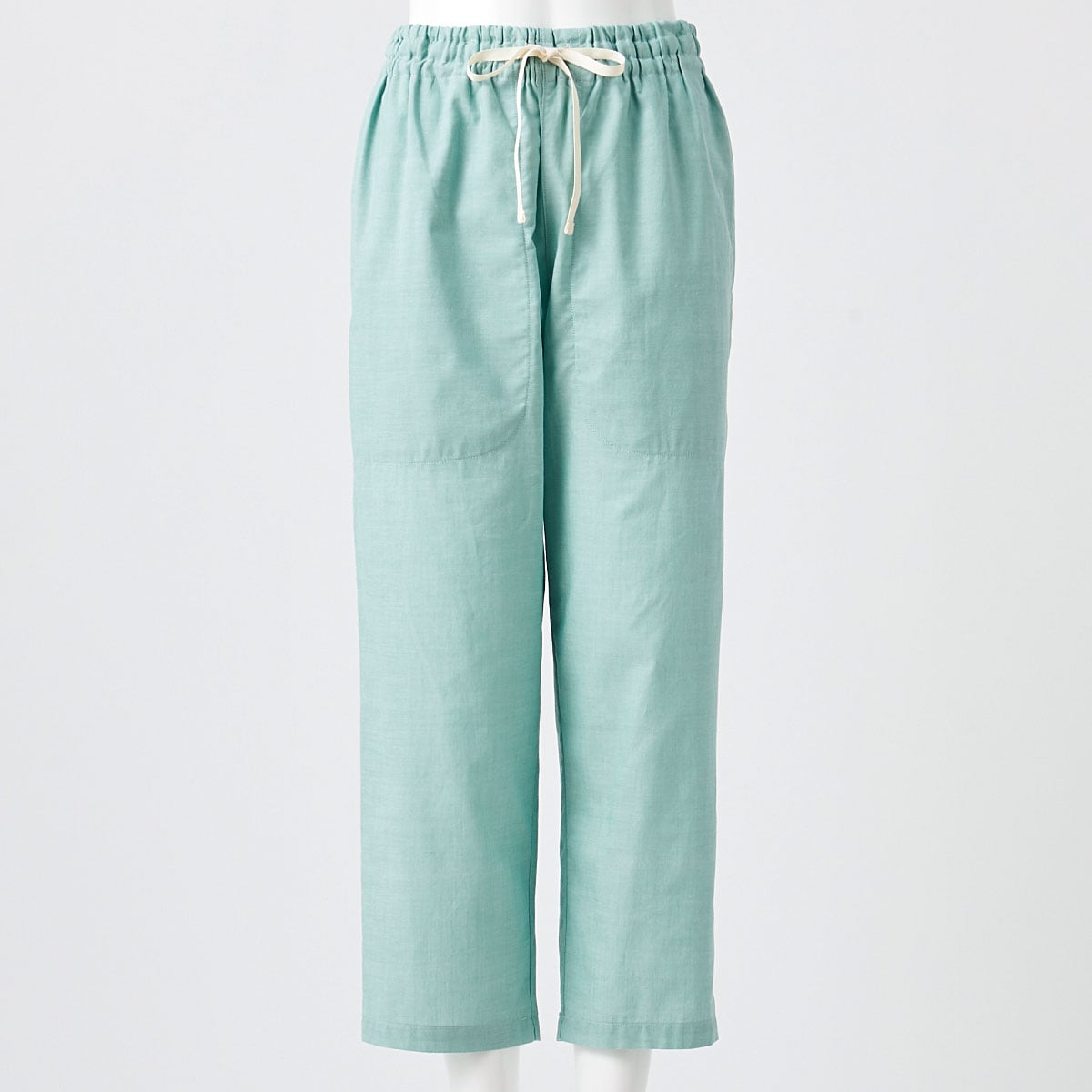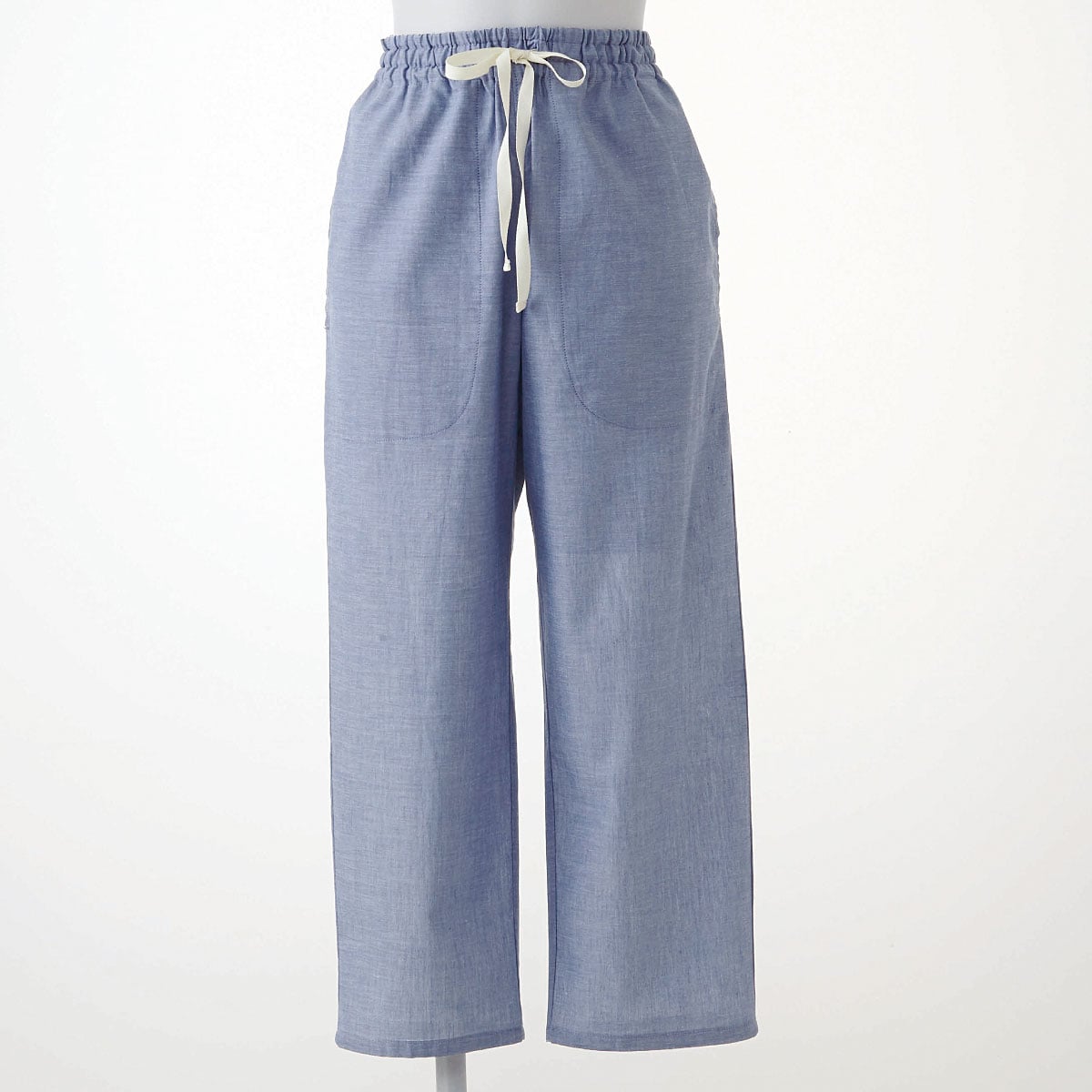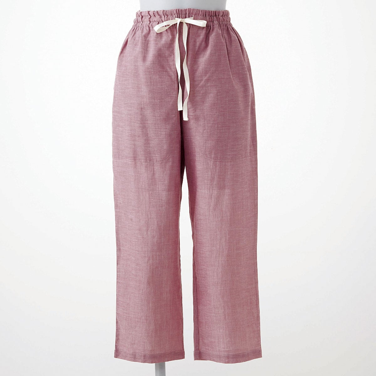 足首が見える8分丈で足さばきがいいっ!さらっと薄手でやわらかなシャンブレー素材。夏のお部屋着コーデが楽しくなる、ラク&可愛い綿100%パンツ。