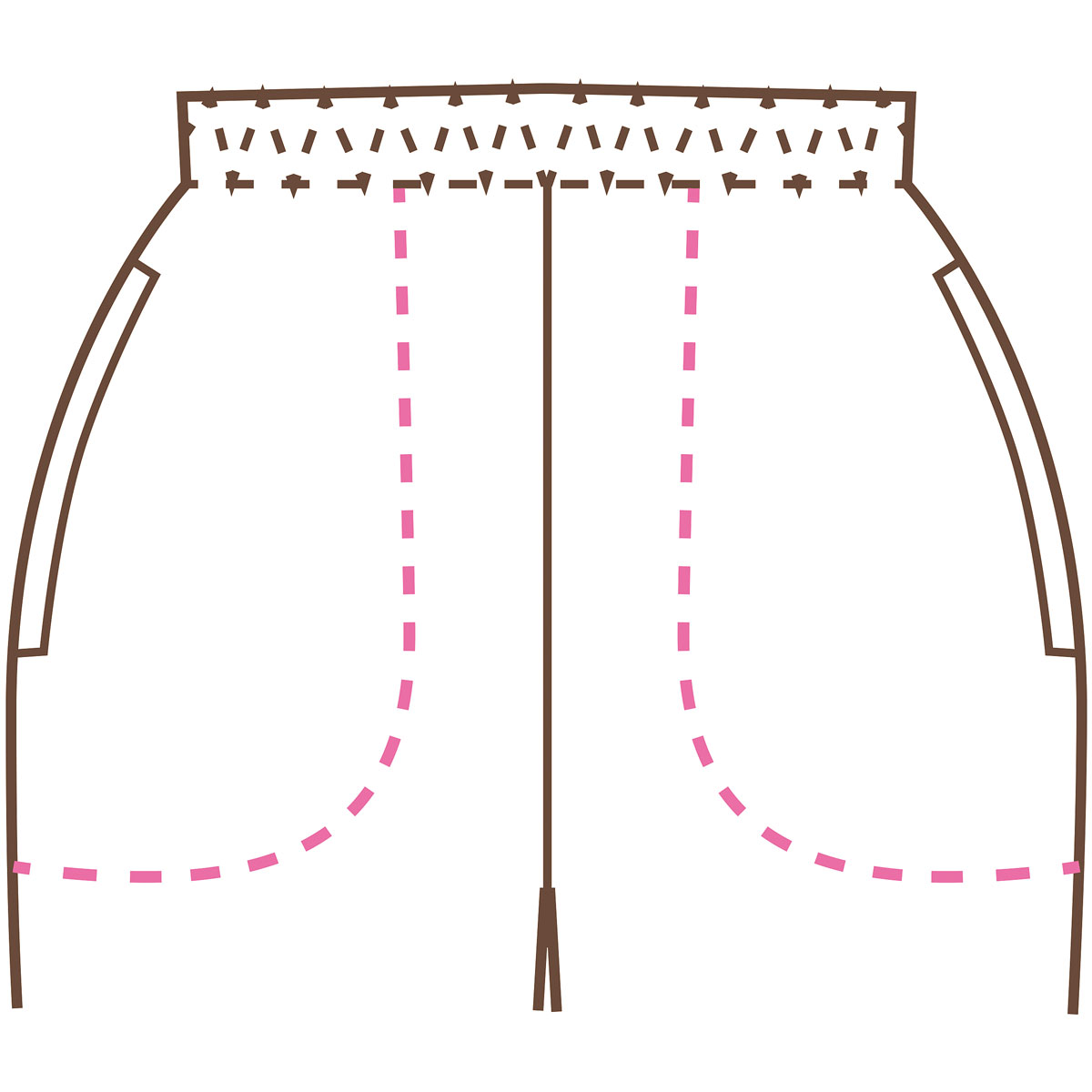 リラックスPoint! (1)股上深めで安心の設計(2)スマホが入る大きさの乾きやすい内側ポケット(3)ウエストゴム取替えOK