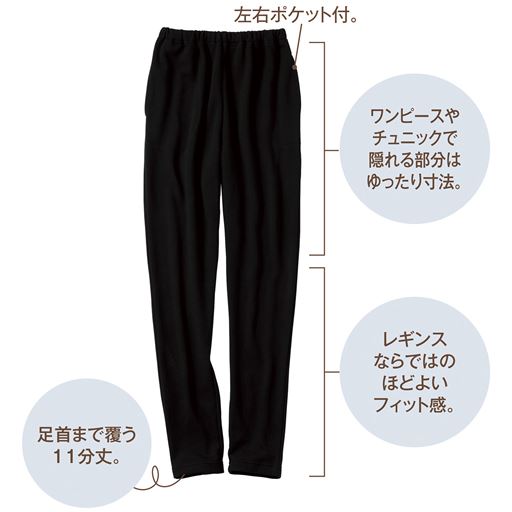 あたたかいストレッチ裏起毛のゆる楽レギンス(足首まで覆う11分丈)