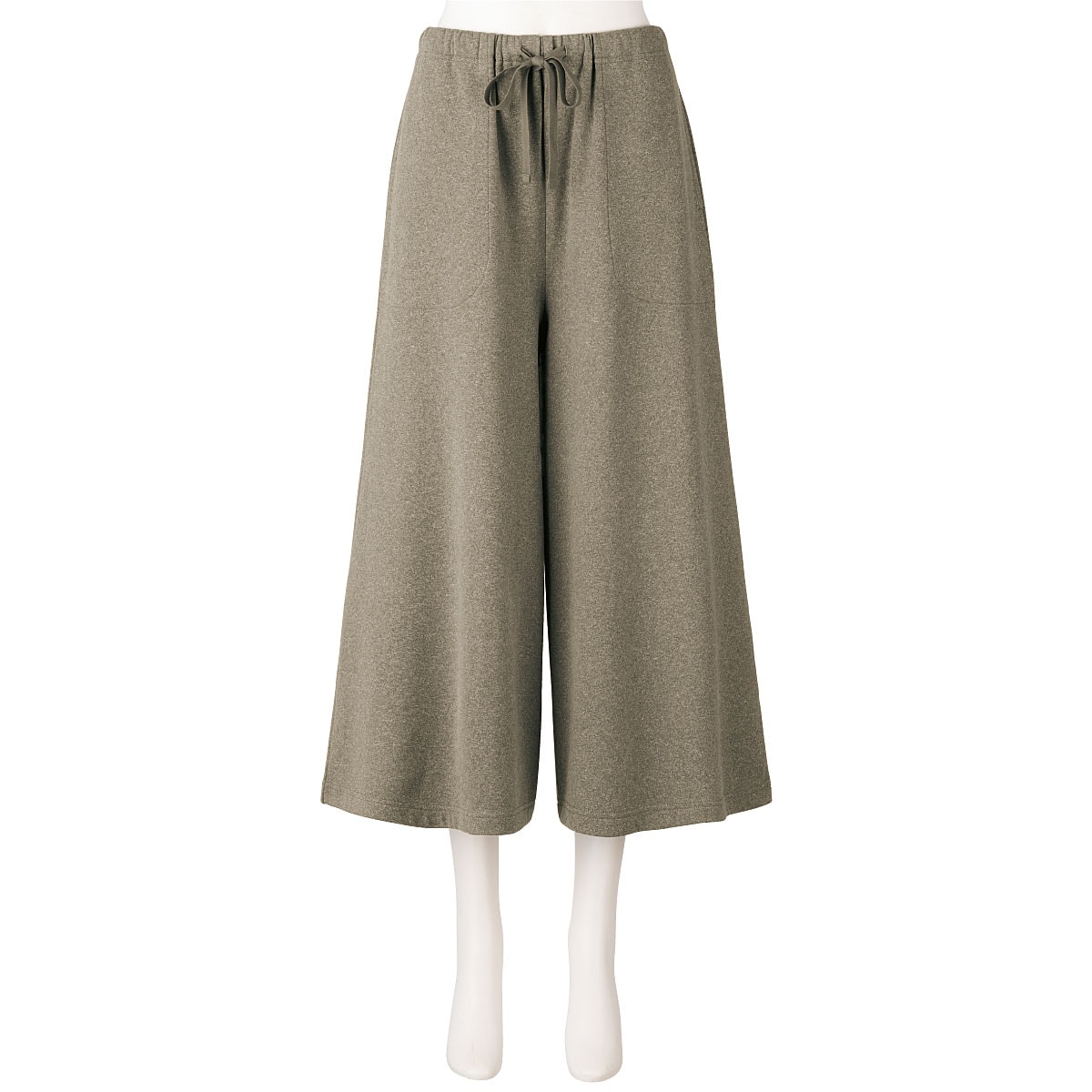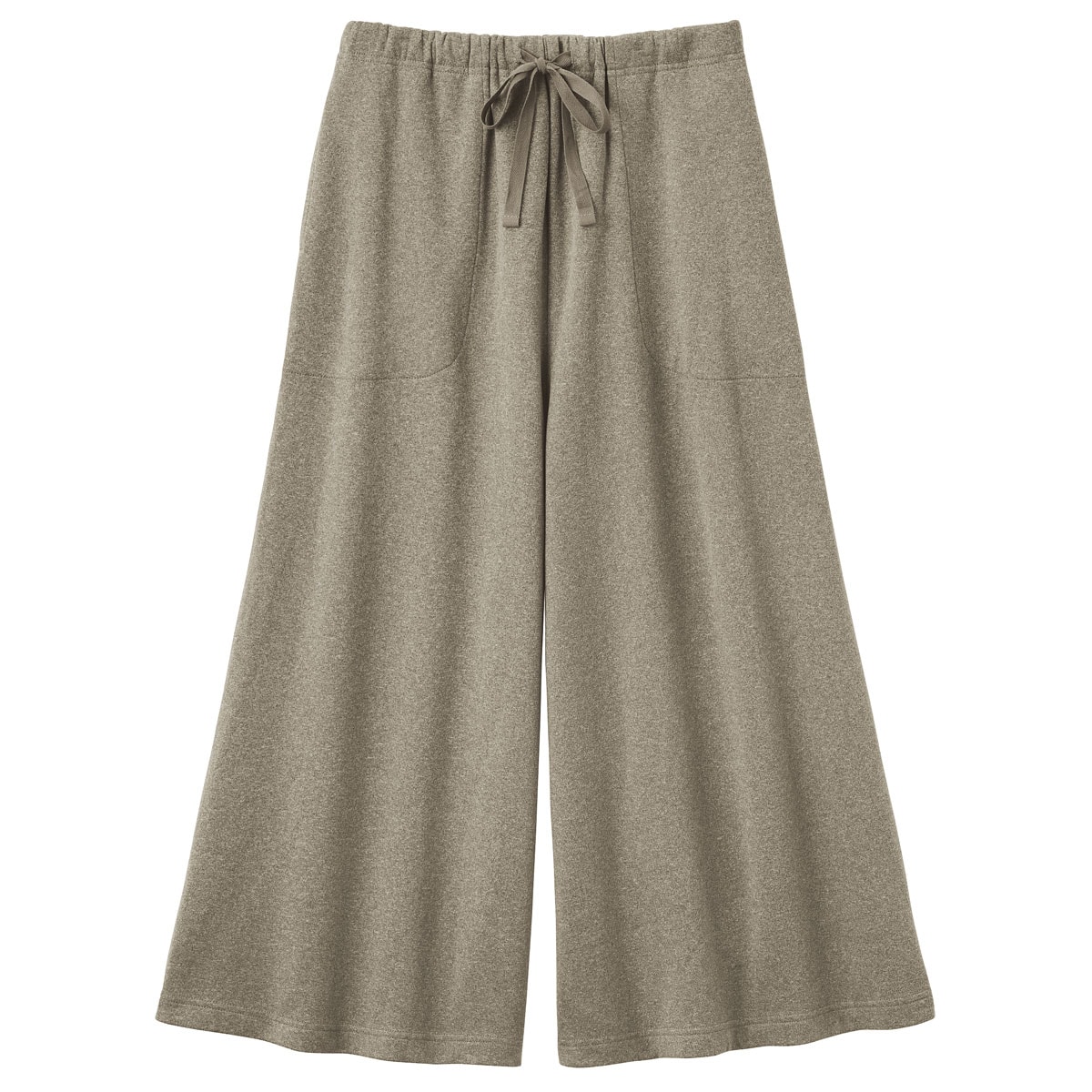 両面起毛のもちもちとした肌触りが気持ちいい、ゆったりシルエットで体系カバーも叶うガウチョパンツ。(ルームウェア) 便利な左右ポケット付き。ウエストはひもで調整可能。ゴム取替口もあります。