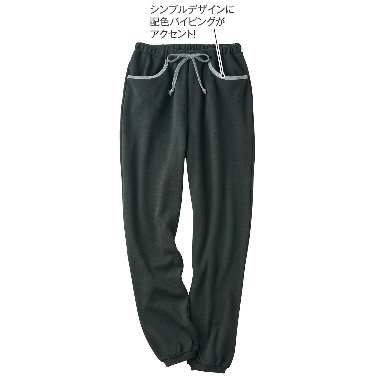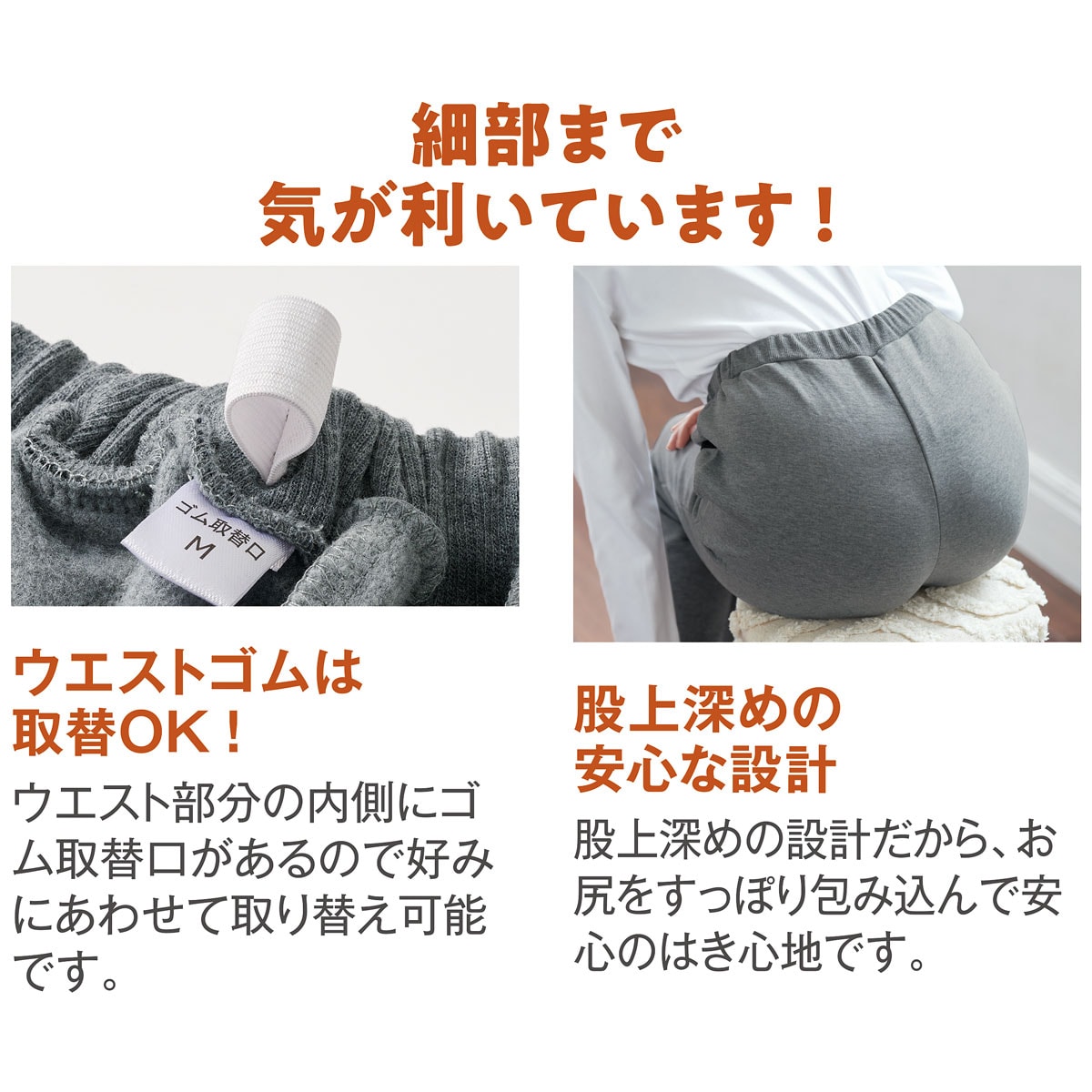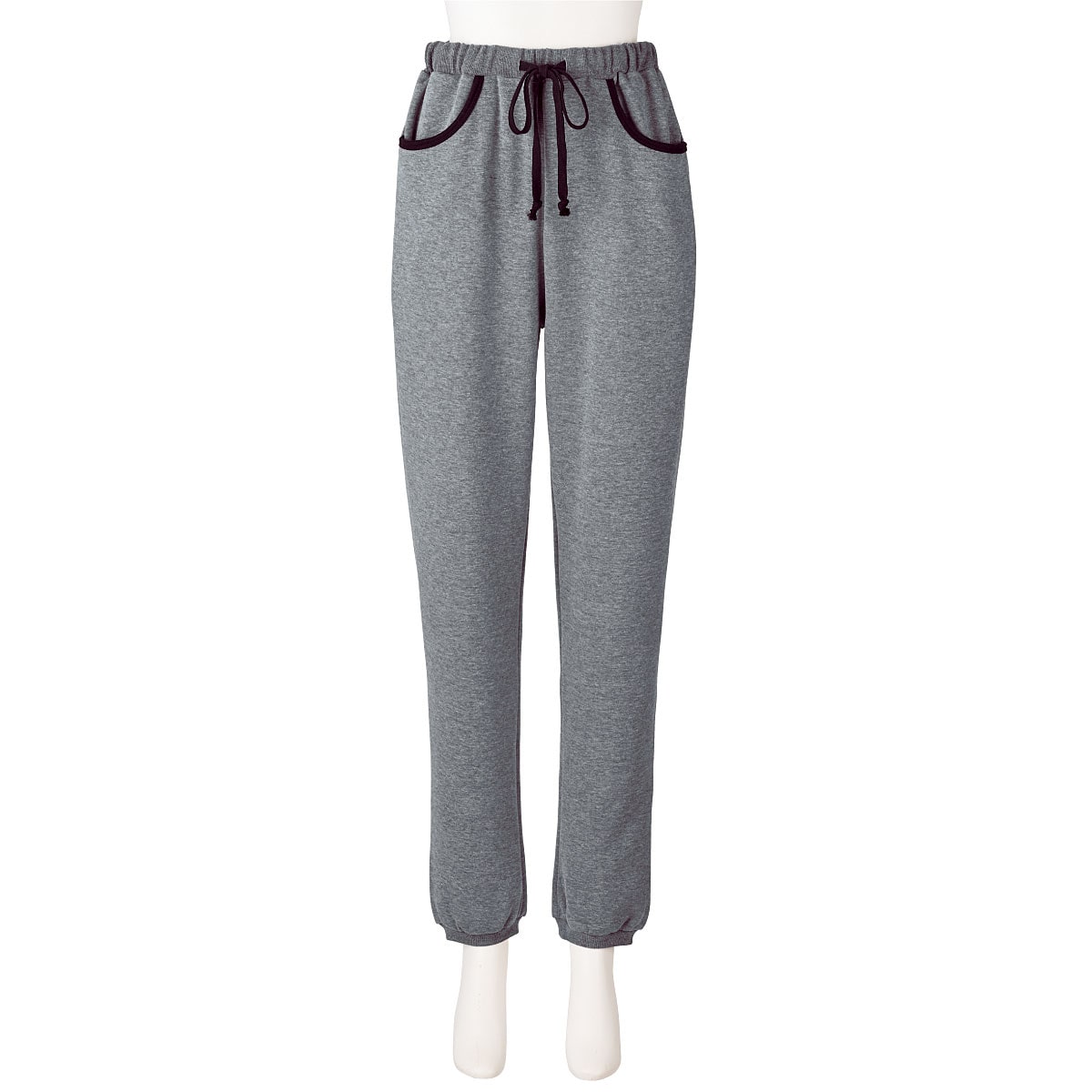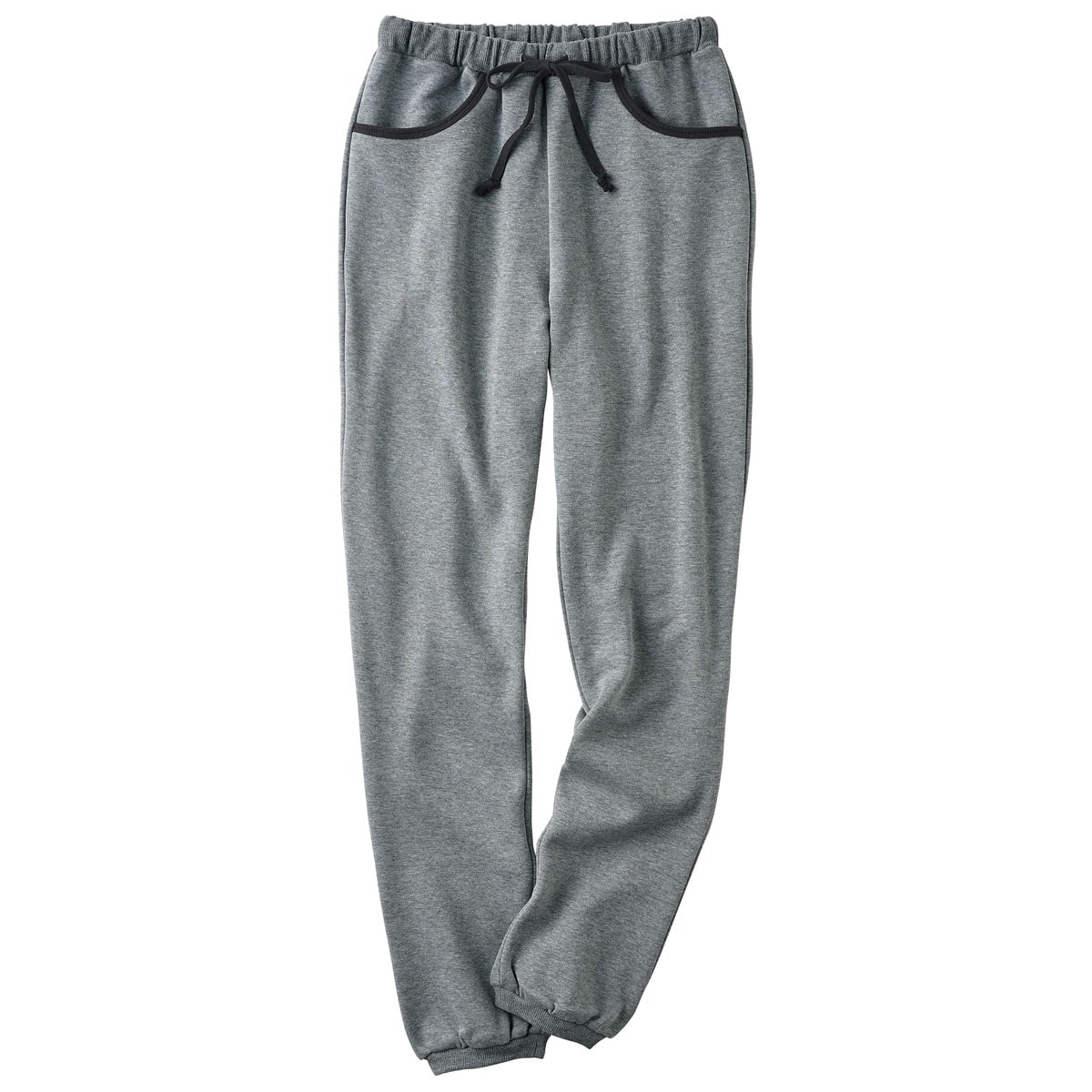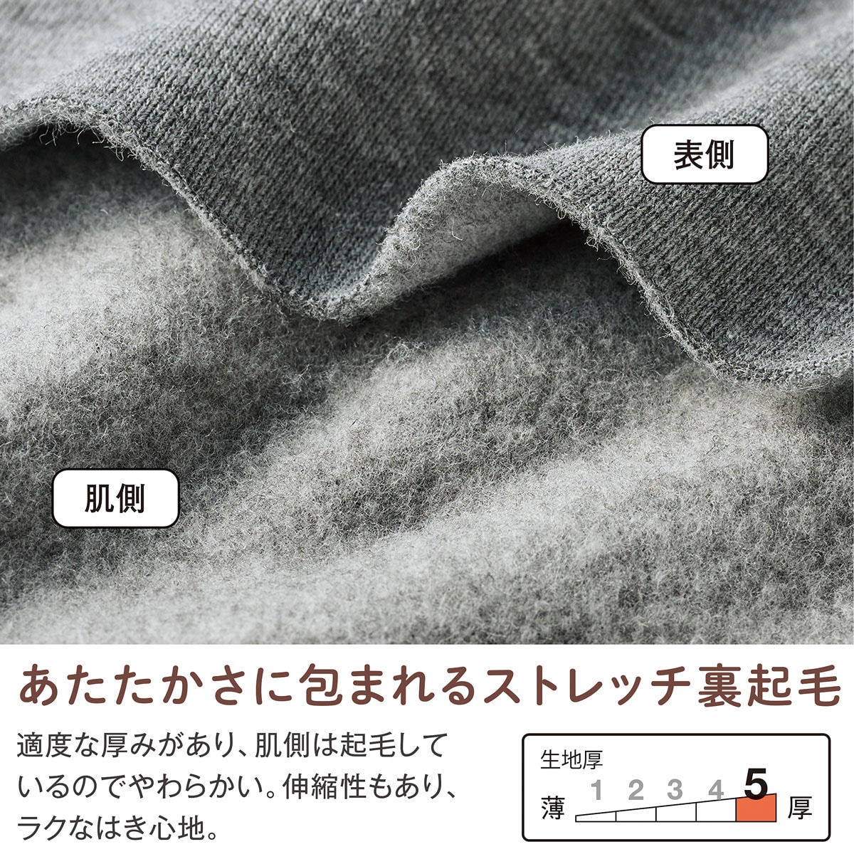冬の部屋着にぴったりの、ストレッチ裏起毛ゆったりルームパンツ。見た目はシンプルなスウェットパンツ風ながら、裏側をやわらかく起毛させているので、はいた瞬間もひんやりせずあたたか。足口リブが足首からの冷気を防ぎます。股上深めの設計でお尻をすっぽり包み込み、安心感のあるはき心地。肌ざわりのいい綿混素材。便利なポケットありタイプで、内側からポケットを縫い付けているので乾きやすいのもポイントです。ウエストゴム取り換え可。大きいサイズまで展開(M~6L)。