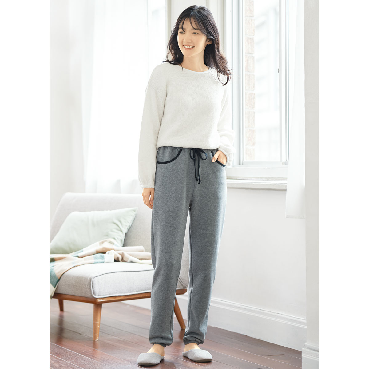 適度に厚みのある綿混ストレッチ裏起毛素材でしっかりあたたかいルームパンツ。股上深めのゆったり設計やゴム取り換え口、乾きやすいポケットなど、デイリーに使いやすい♪ふっくらさん対応サイズplump(プランプ)もあります。