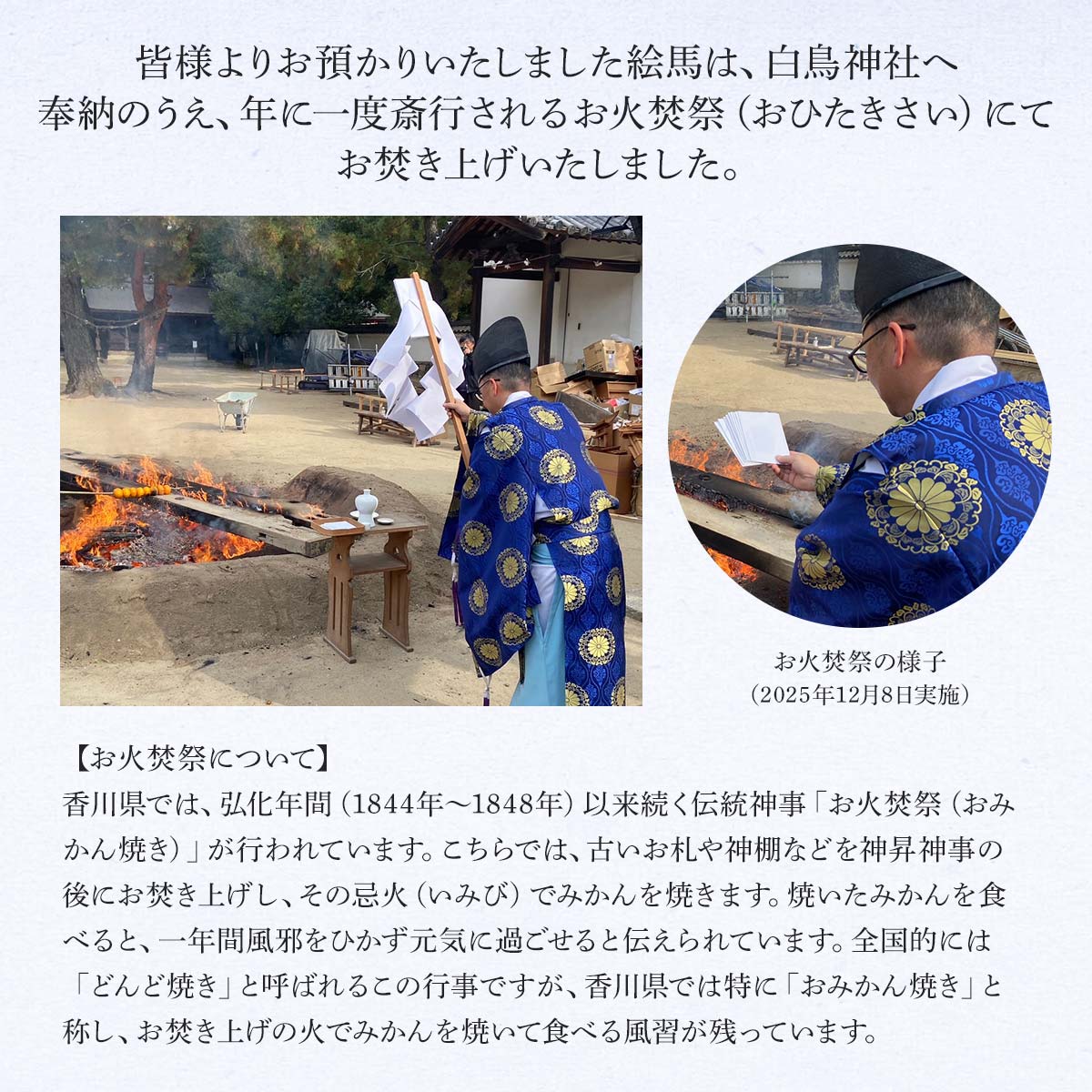 片付けたいけど、想い出の衣料品などは簡単には「捨てられない・・・」そのお悩みを解決するリユース回収サービスを始めました絵馬に感謝の気持ちを込めて、想いを届けてみませんか回収キットをご購入し、絵馬に感謝のお気持ちをお書きください購入いただいた回収袋に絵馬と衣料品などを詰めて!あとはドライバーさんお渡しするだけ!ご家庭でカンタンに発送ができます!※絵馬は回収袋の梱包の際に一番上に置き発送してください絵馬は、香川県の白鳥神社にご奉納し、感謝の祝詞を奏上し、お焚き上げいただきます