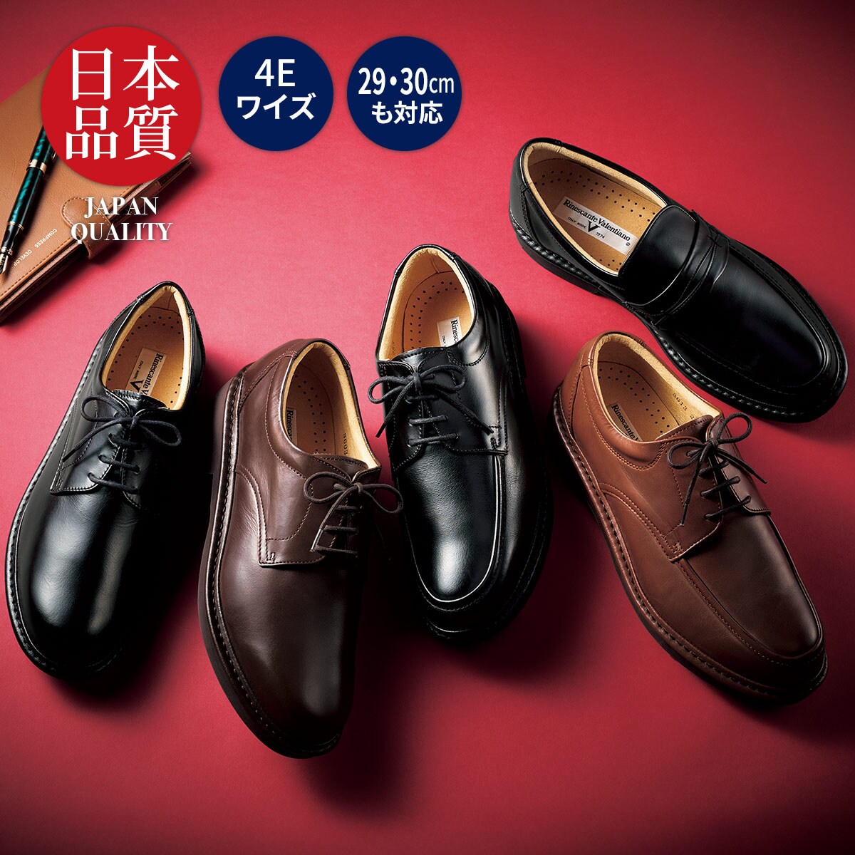 -お買い得ポイント-しっかりと足を包み込んでくれるクッション性に優れた(リナシャンテバレンチノ)の日本製ビジカジシューズは、高機能で疲れにくいのでアクティブなビジネスマンに最適!-デザイン-ゆったり幅広の4Eワイズ。クッション性の高いソールを内蔵しているので疲れにくい仕様。-素材特徴-素材は牛革ながら柔らかく、屈曲性も高いので、歩きやすい。全工程を国内仕上げなので安心です。抗菌防臭加工。はっ水加工だから急な雨でも安心です。