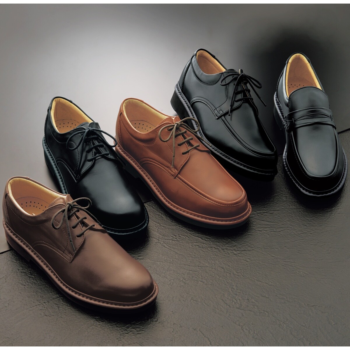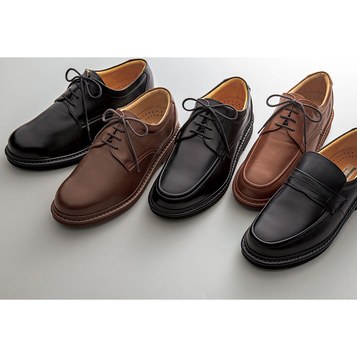 ブラックB(プレーントゥ)ダークブラウンB(プレーントゥ)ブラックC(Uモカ)ブラウンC(Uモカ)ブラックA(ローファー)