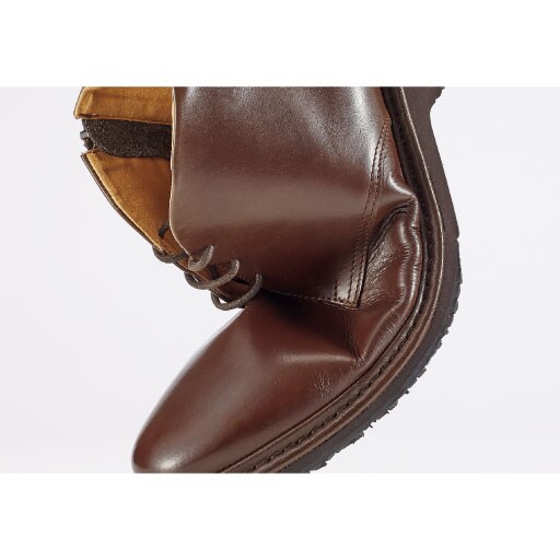 素材は牛革ながら柔らかく、屈曲性も高いので、歩きやすい。