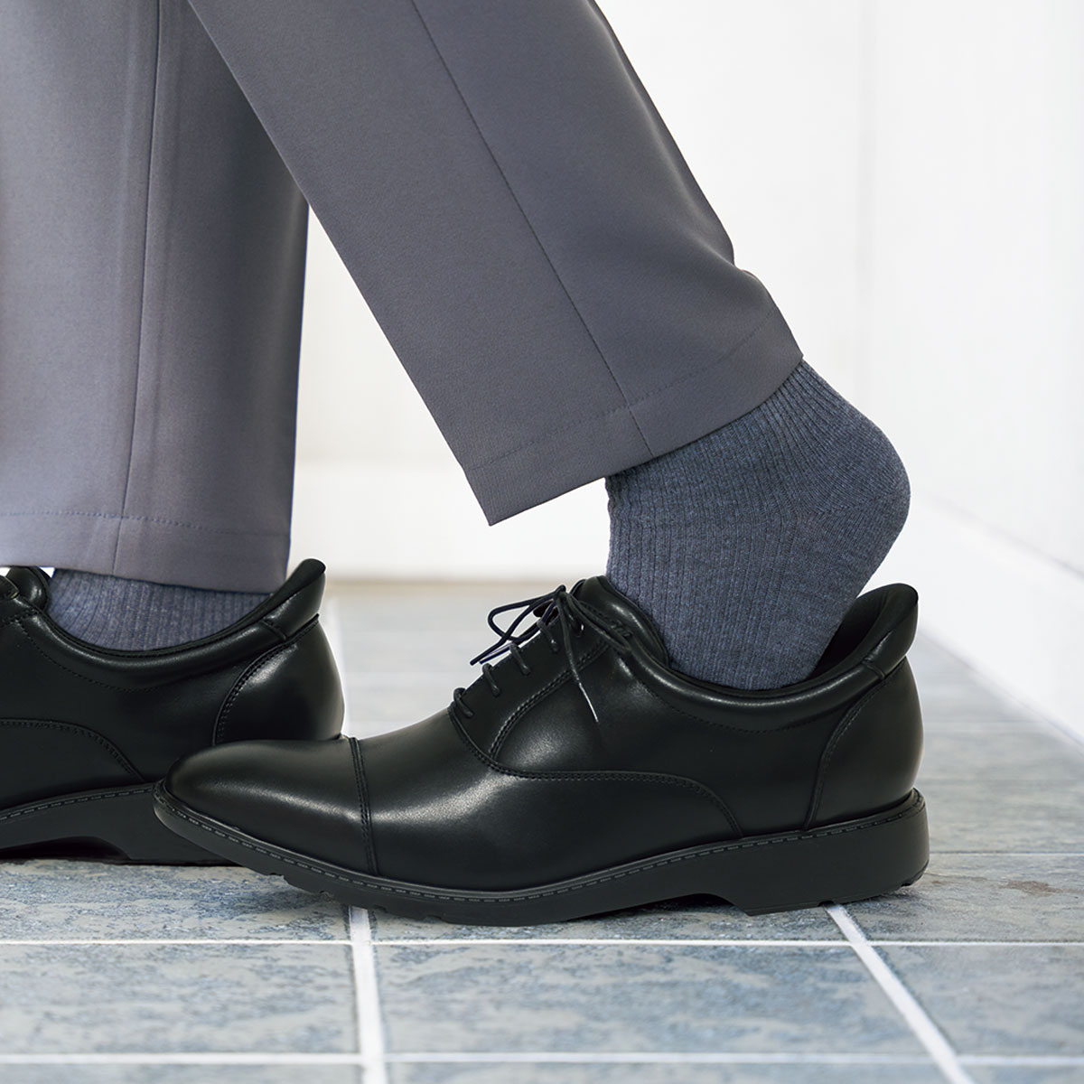 靴ベラいらず!しゃがまずに、スルッと履ける ブラックBストレートチップ)コーディネート例