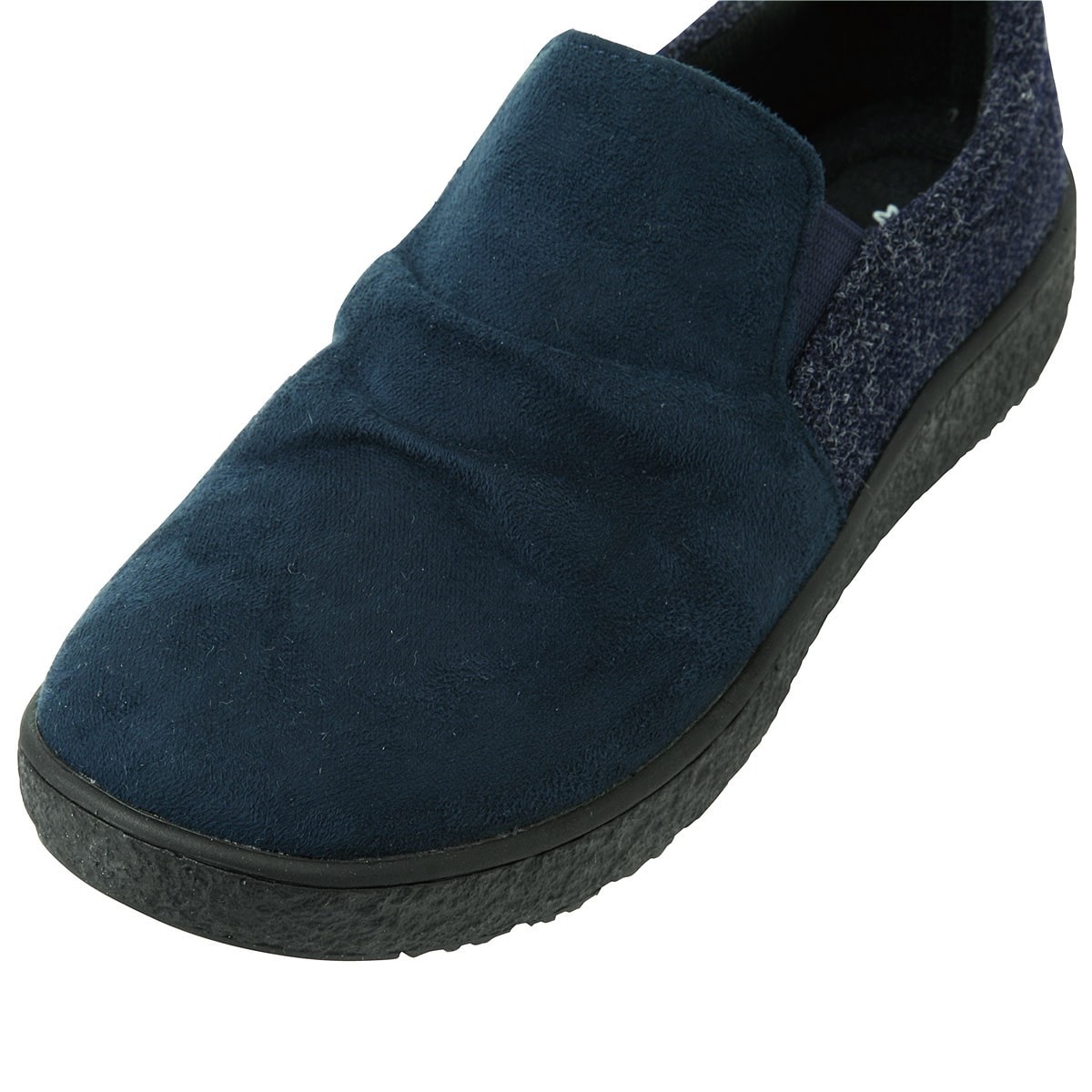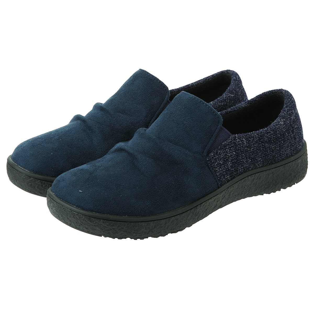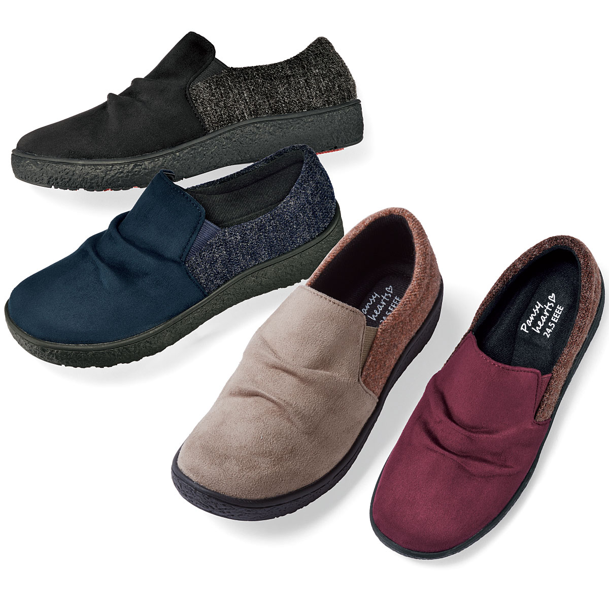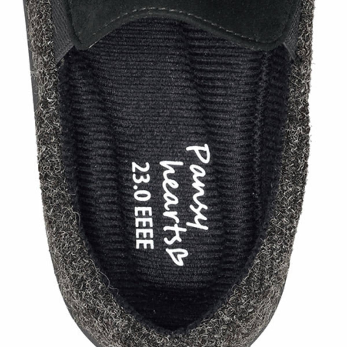 【Pansy(パンジー)】温もり感があるスエード調×杢ツイード調のコンビが上品脱ぎはきラクラクのスリッポンタイプ!甲を深く覆うので歩きやすく、ふんわりとした履き心地
