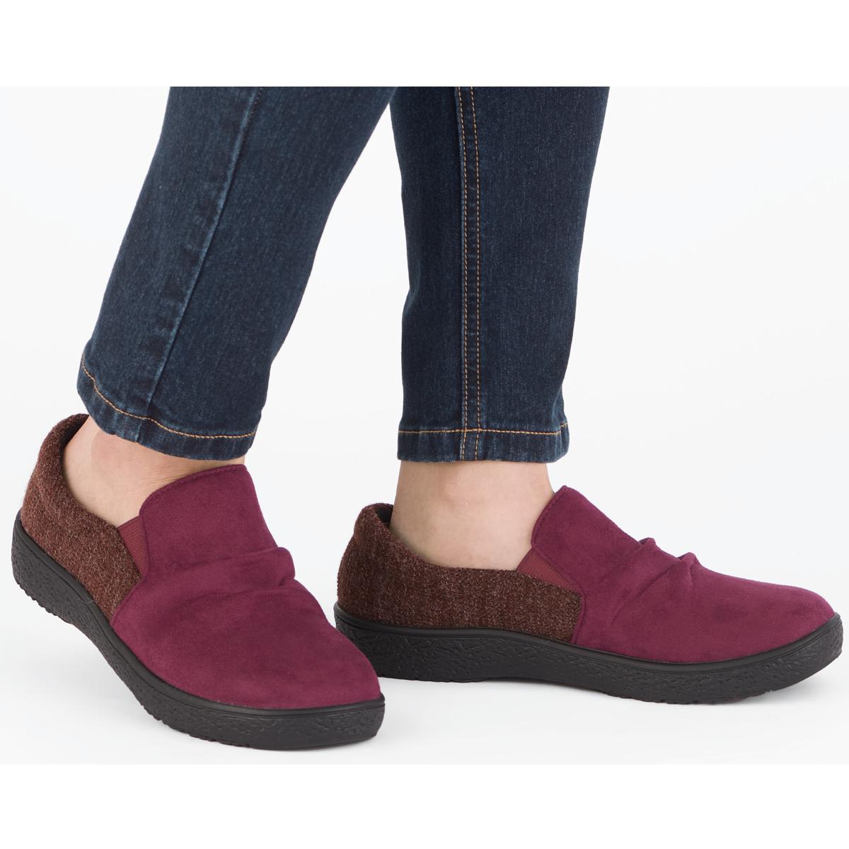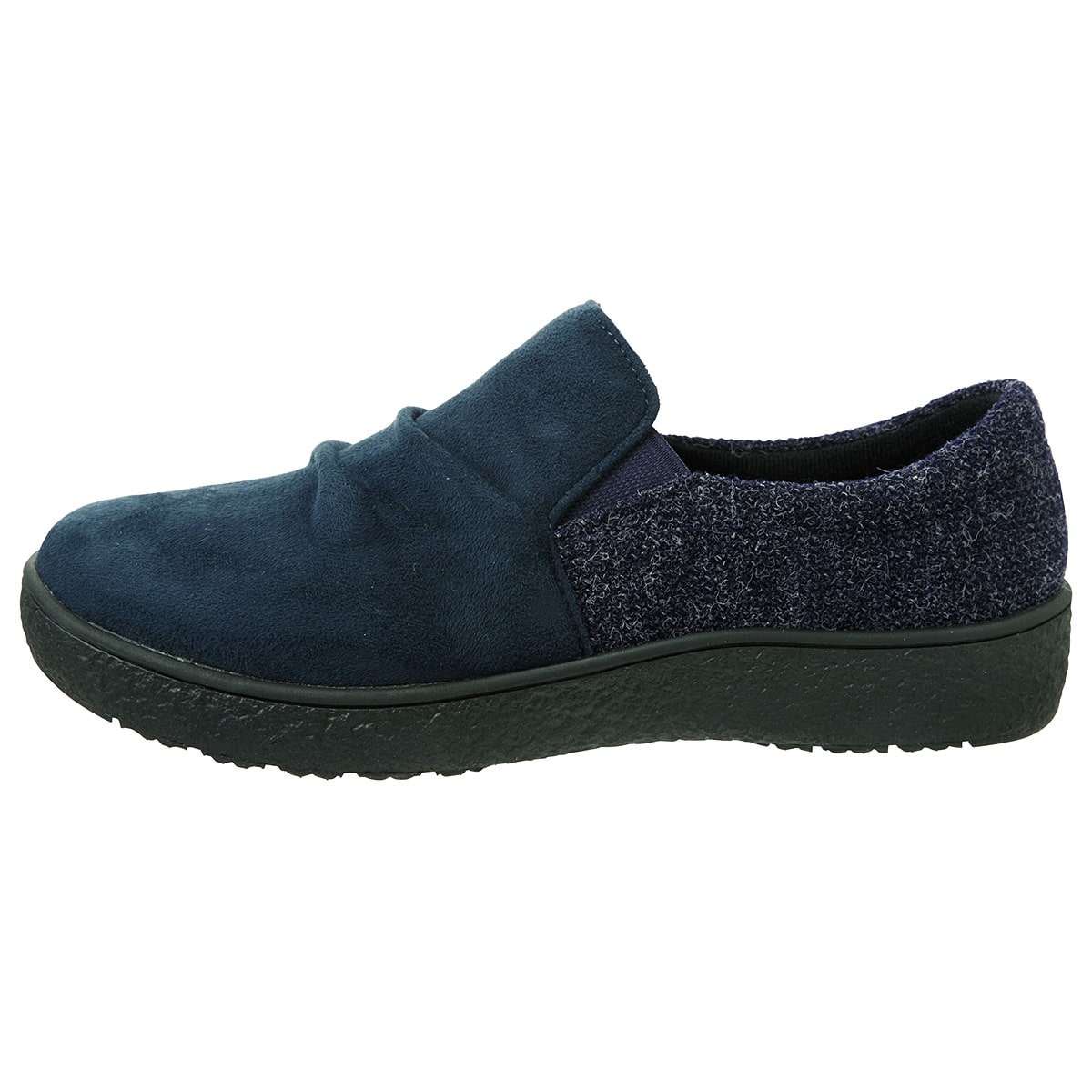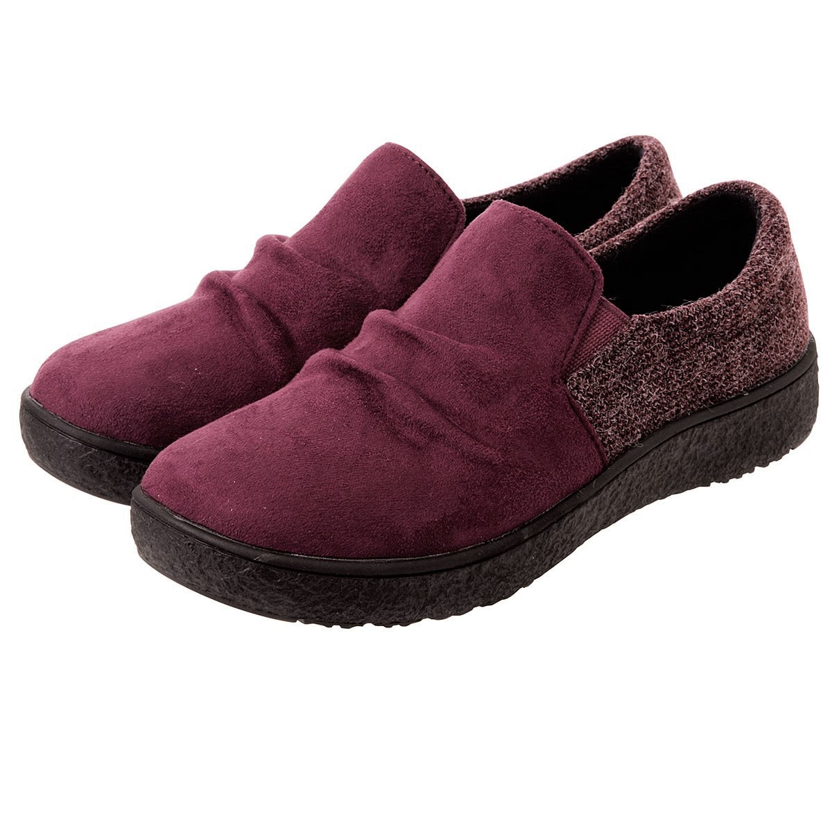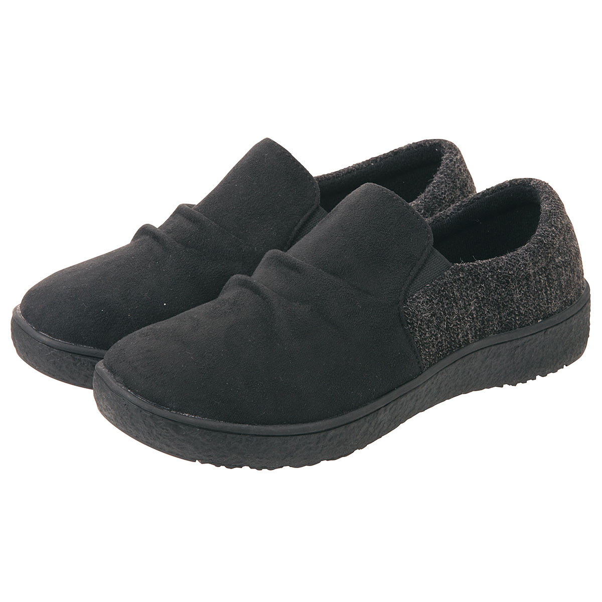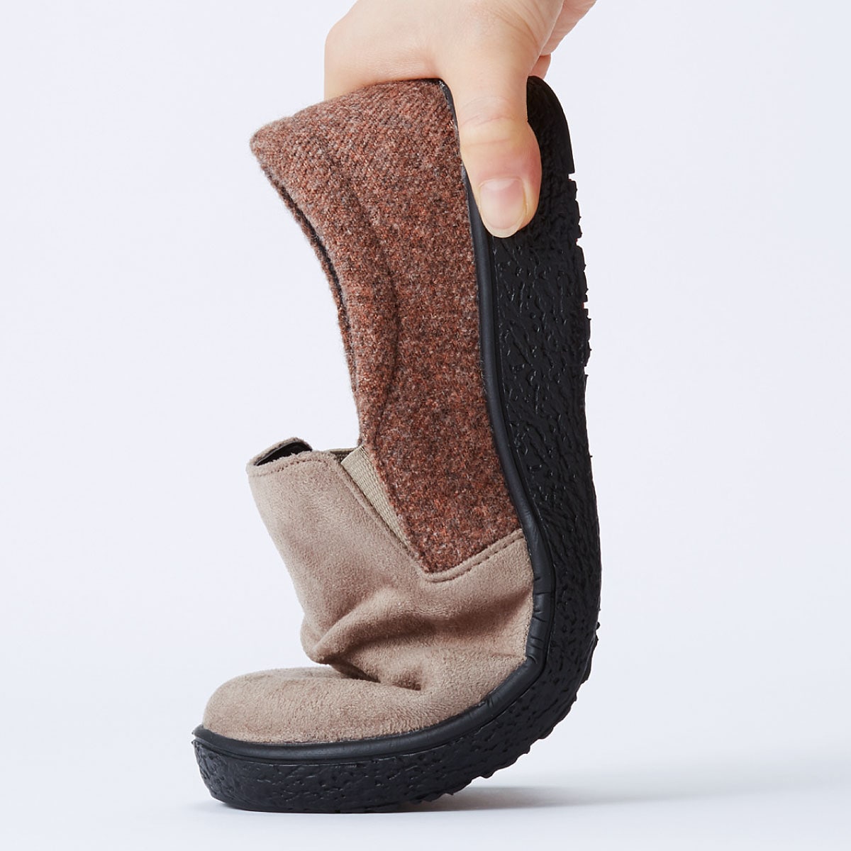 【Pansy(パンジー)】温もり感があるスエード調×杢ツイード調のコンビが上品脱ぎはきラクラクのスリッポンタイプ!甲を深く覆うので歩きやすく、ふんわりとした履き心地