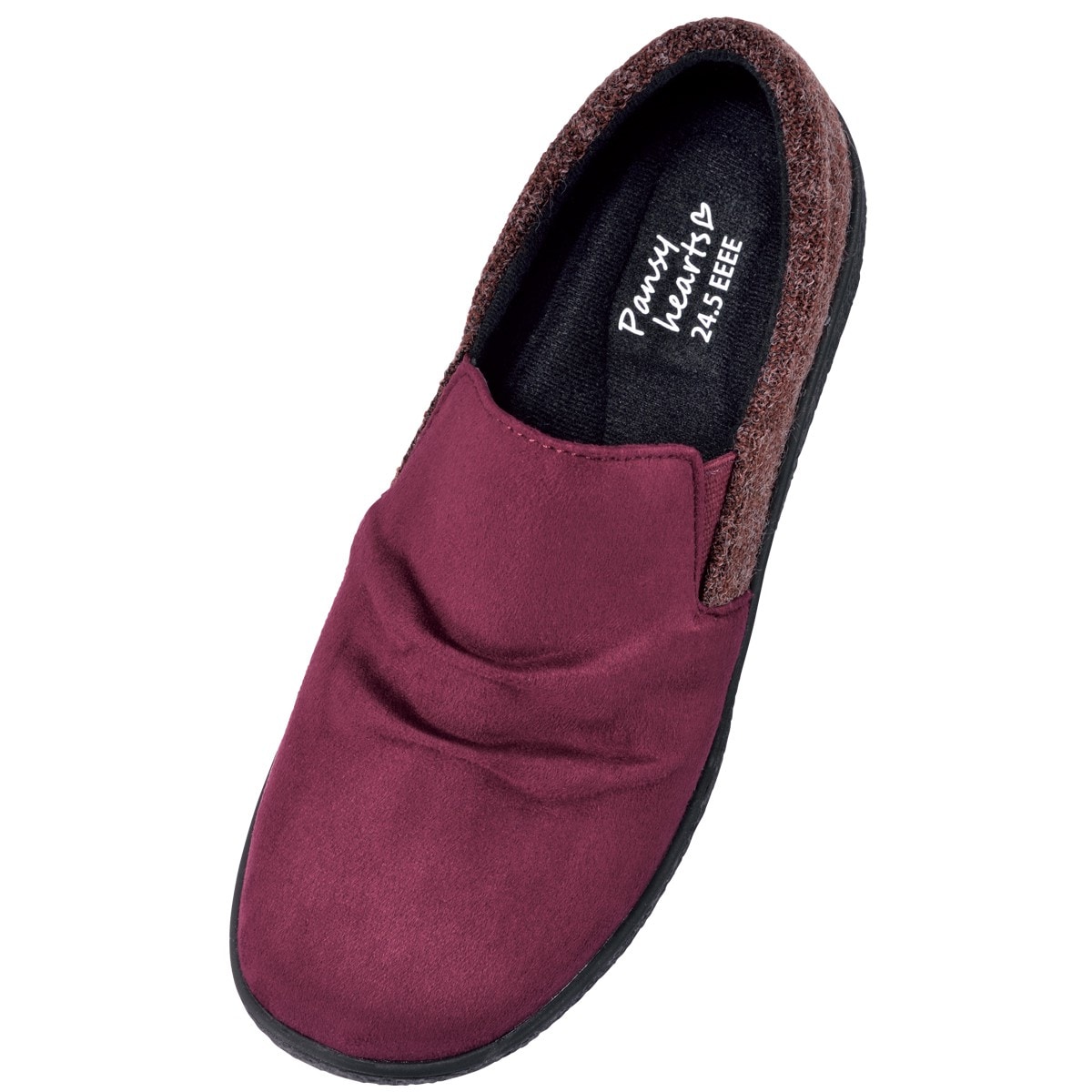 【Pansy(パンジー)】冬らしい温もり感があるスエード調×杢ツイード調のコンビが上品。脱ぎはきラクラクのスリッポンタイプ。甲を深く覆うので歩きやすく、ふんわりとした履き心地です。