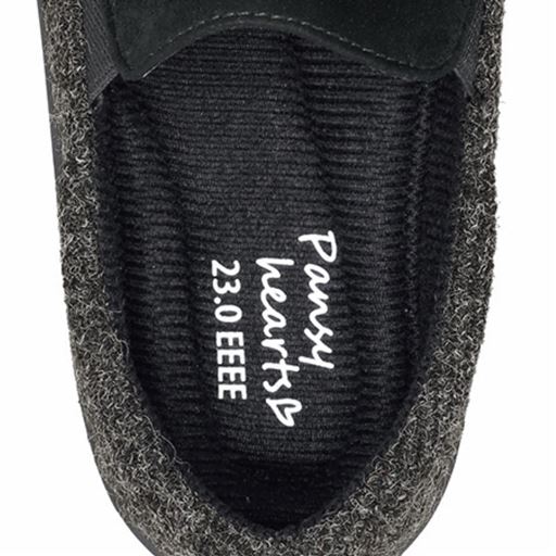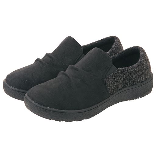 【Pansy(パンジー)】冬らしい温もり感があるスエード調×杢ツイード調のコンビが上品。脱ぎはきラクラクのスリッポンタイプ。甲を深く覆うので歩きやすく、ふんわりとした履き心地です。