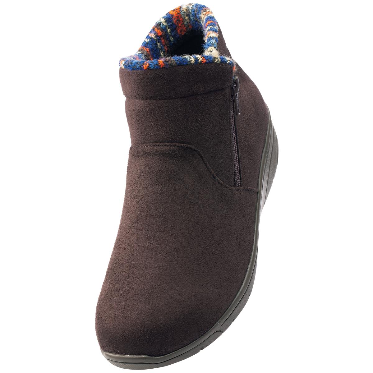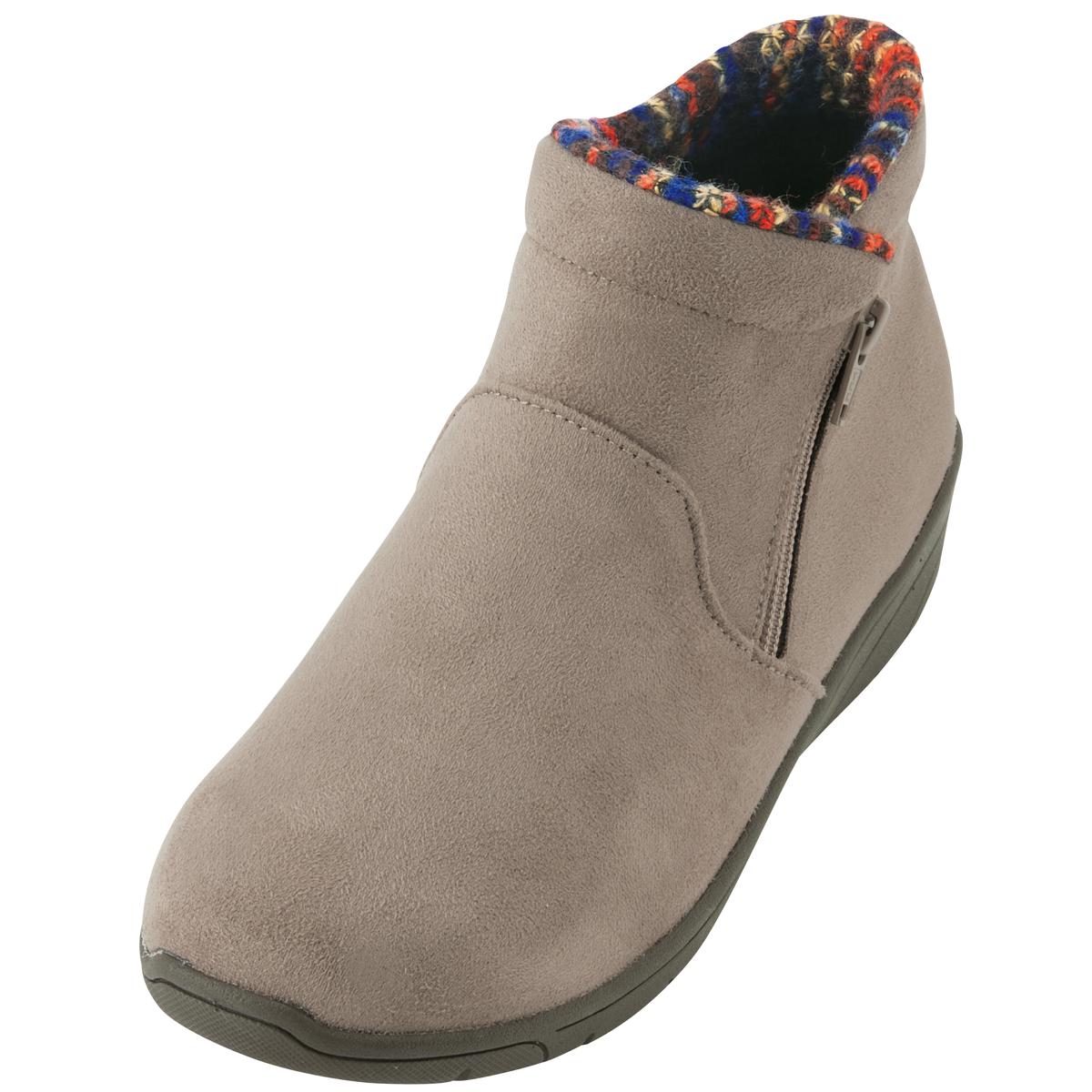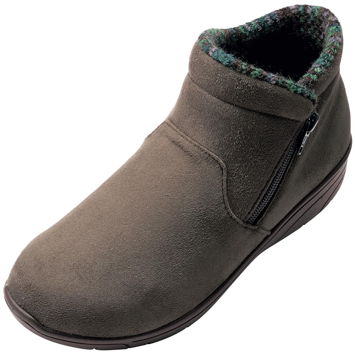 生活防水設計で雨の浸入を防ぐ、ゆったり4E相当で履きやすいショートブーツ。ファスナー付きで脱ぎ履き簡単。中敷は抗菌防臭加工でニオイ対策も。ーデザインーあたたかみのあるスエード調の素材に、チラリと覗く履き口のニット素材がシックな秋冬コーデのアクセントに。ー素材特徴ー中敷の下に配した断熱性シート「ミラマット」が地面からの冷気をブロックし、靴内部の空気をあたたかく保ちます。【はっ水】 【抗菌防臭】(中敷)