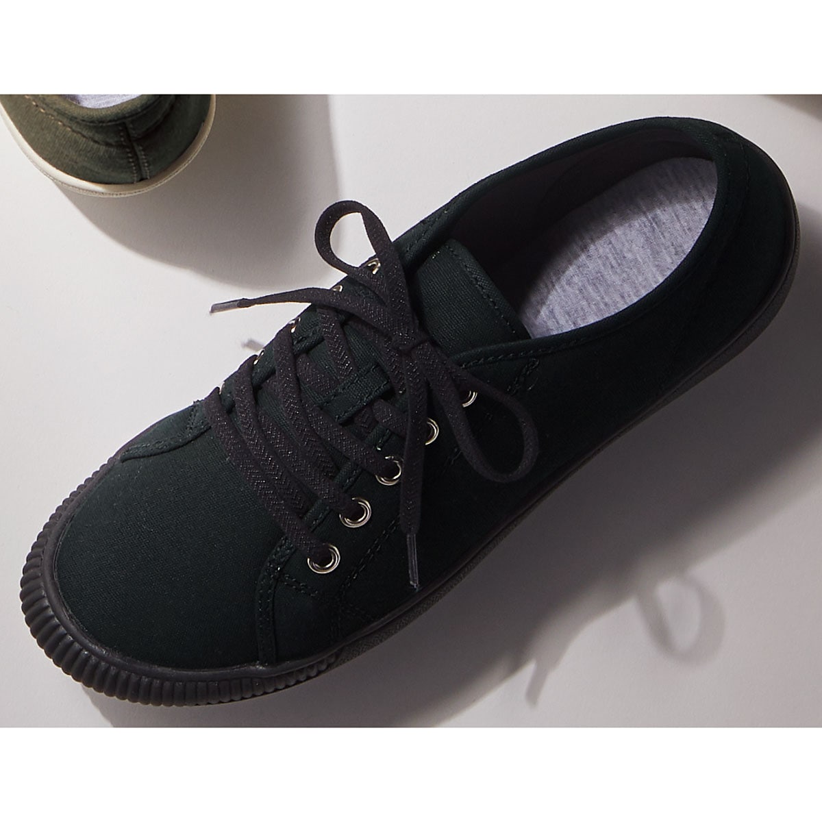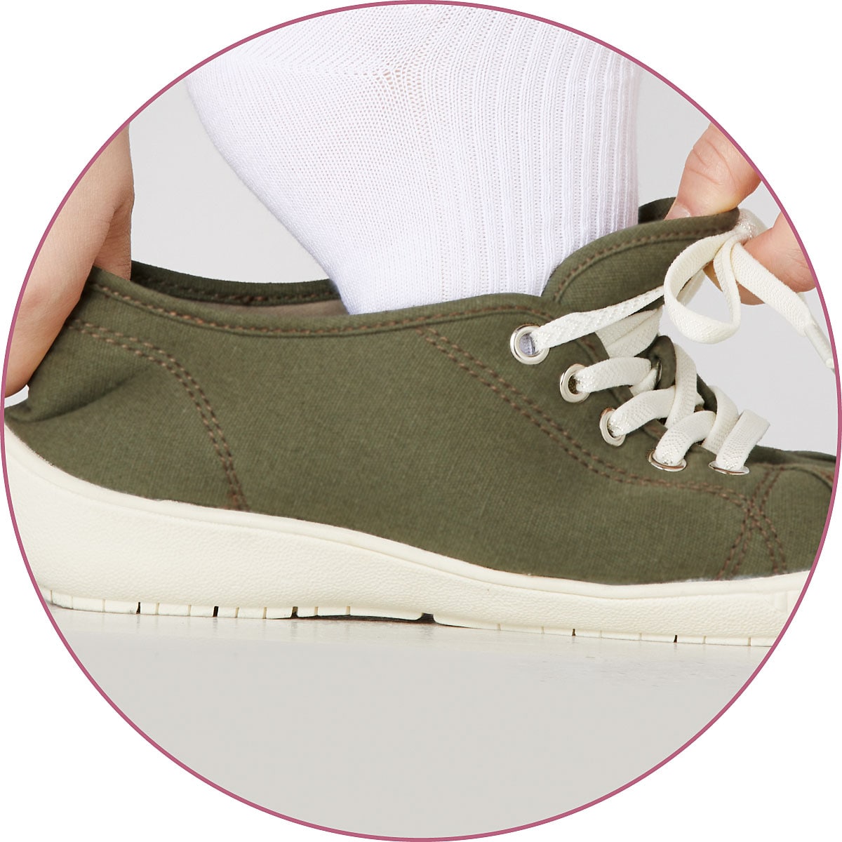 カーキサッとはきやすい 伸びるゴムのくつ紐で脱ぎはきがラク