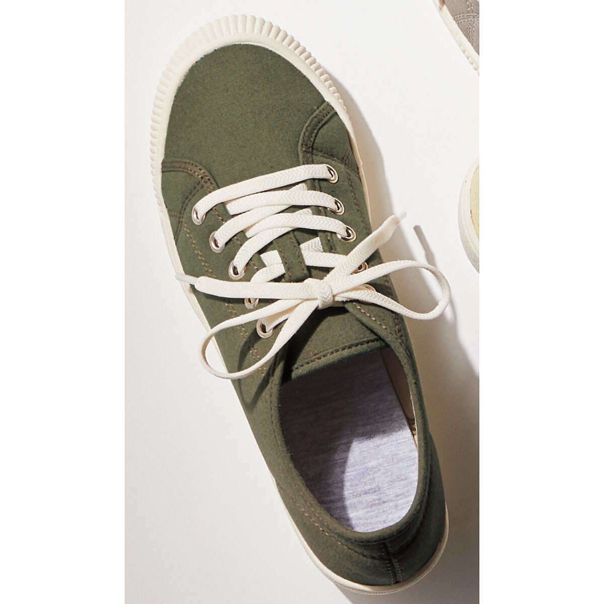 カーキサッとはきやすい 伸びるゴムのくつ紐で脱ぎはきがラク