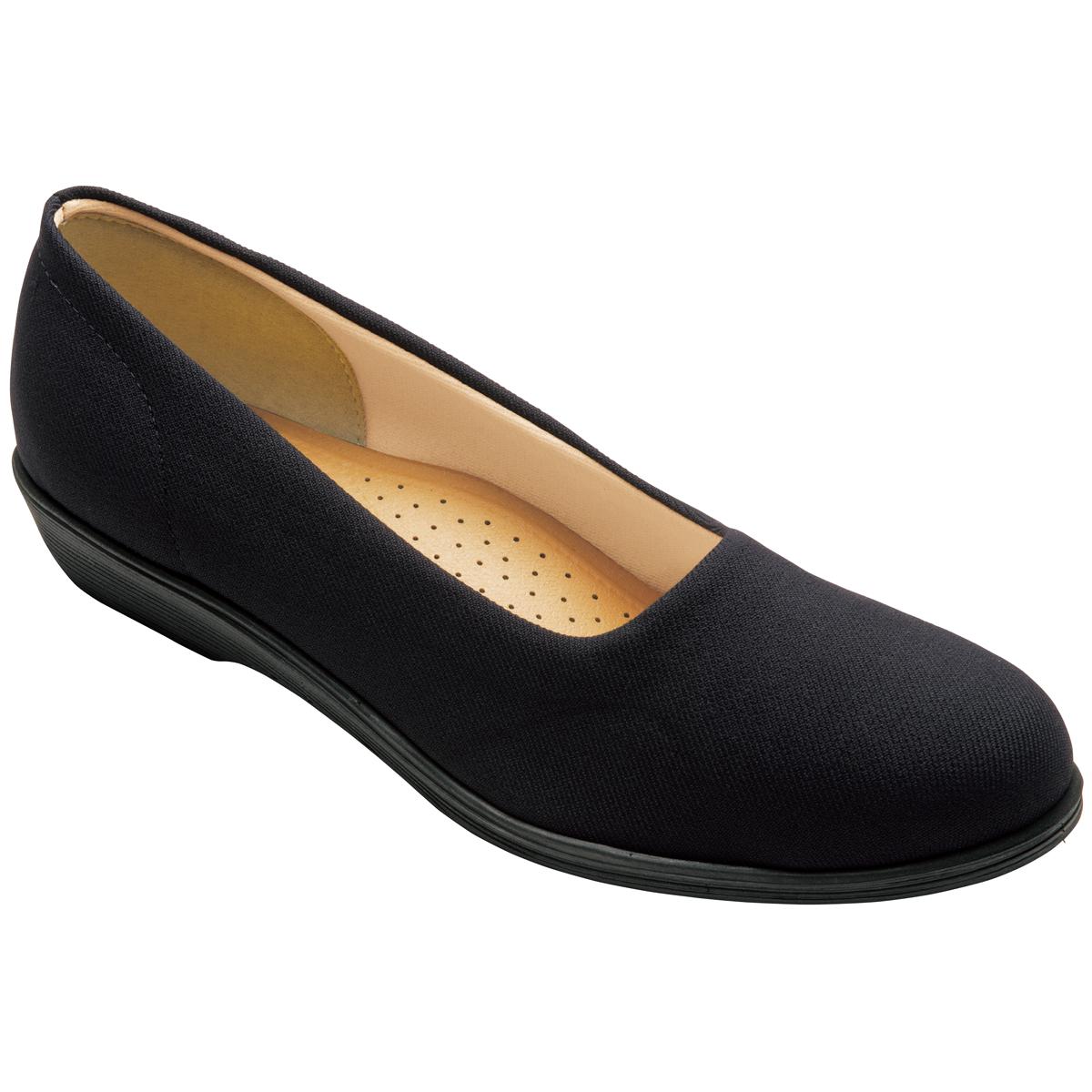 足取り軽やかシンプルで合わせやすい!普段にも仕事にも使えるデザイン。とにかく軽く、低めヒールで歩きやすい。両サイドの足指の当たる部分をしめつけない設計だから優しい履き心地のシューズです。お客様のご要望にお応えして、ブラックのみ25.5cmもご用意しました。-こだわりPOINT-・甲部分両サイドは伸縮素材を使い、足への負担軽減。・返りの良いソールで歩きやすい。・はっ水加工で水が染み込みにくい。・アーチクッションが土踏まずにフィット!
