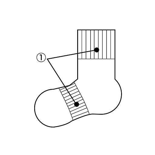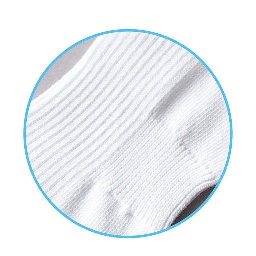 (1)サポート機能付きでしっかりズレを防ぎます (ホワイトAを除く)。クルー丈、ミニハイ丈、ハイソックス丈は足首からはき口までしっかりフィット。