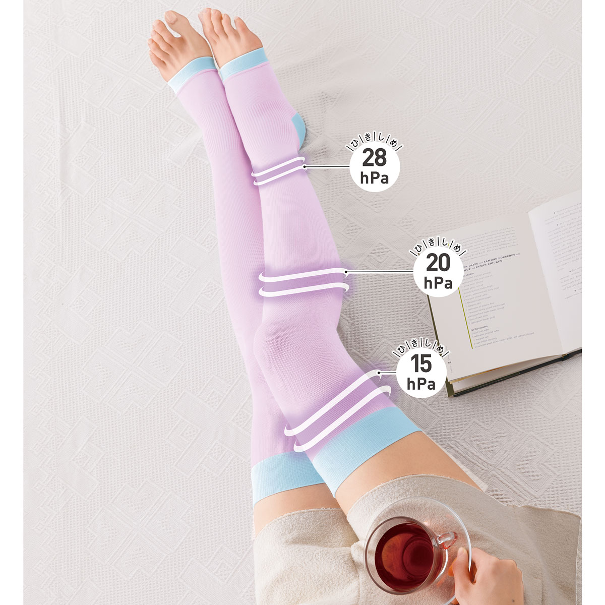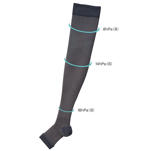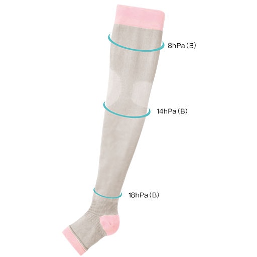 足首から上へと持ち上げていくような段階的な着圧の設計
