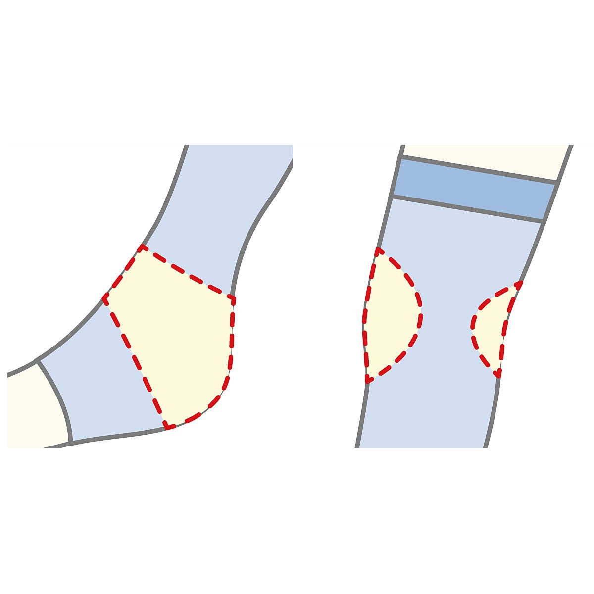動きが多いひざ・ひざ裏はメッシュ編み、足首はリブ編み