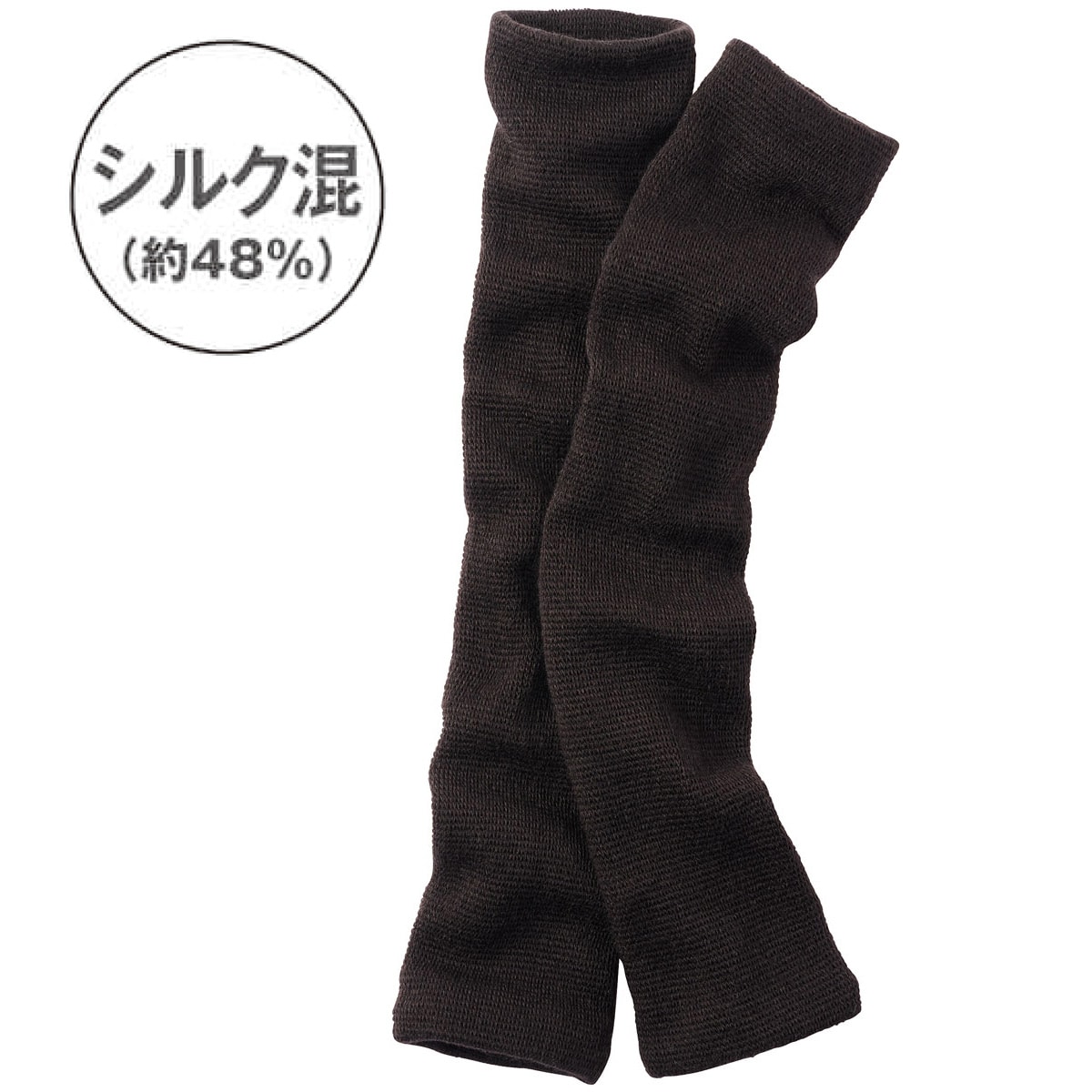 脚の冷える部分に合わせてお好きな位置で使えるロング丈のレッグウォーマーです。太ももから足首まで覆う丈感に、横幅はのびのびフィットで締め付け感がありません。肌側は、綿に近い素朴な風合いのシルク混素材。ワイドパンツやロングスカートの中に重ねてあたたかくお過ごしいただけます。同シリーズで、ひざ下丈のご用意もあります。(SK-598)