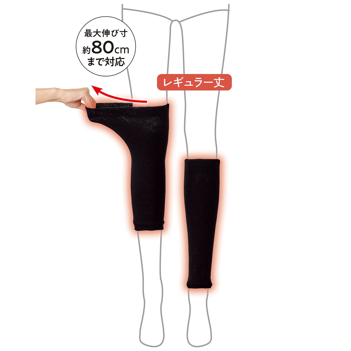 お好みの位置に付けられるので、ふくらはぎだけでなく、ひざカバーとしてもお使いいただけます。