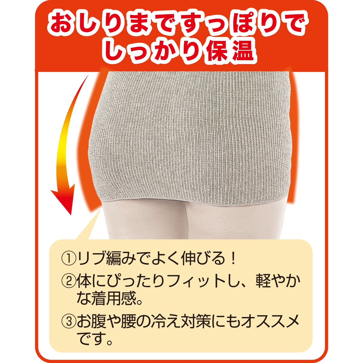 伸びの良い生地でおしりまでしっかり包んであたたかいロングベスト