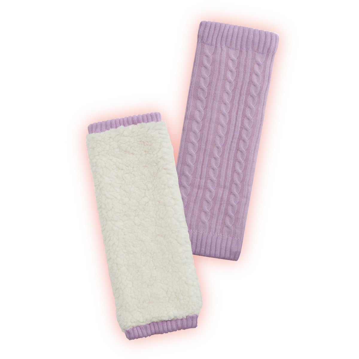 • 表側のニット素材はラベンダーカラー、裏側はふわふわボア素材。(ラベンダー生地拡大)