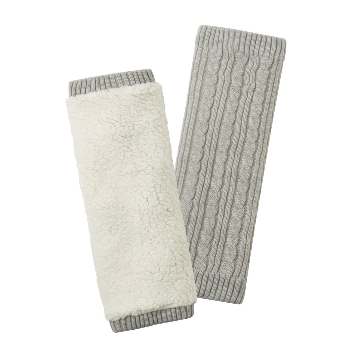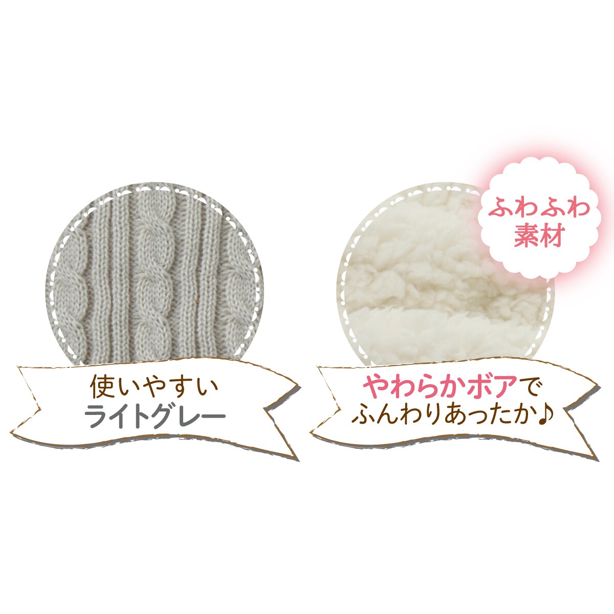 表側のニット素材はライトグレー、裏側はふわふわボア素材。(ライトグレー生地拡大)