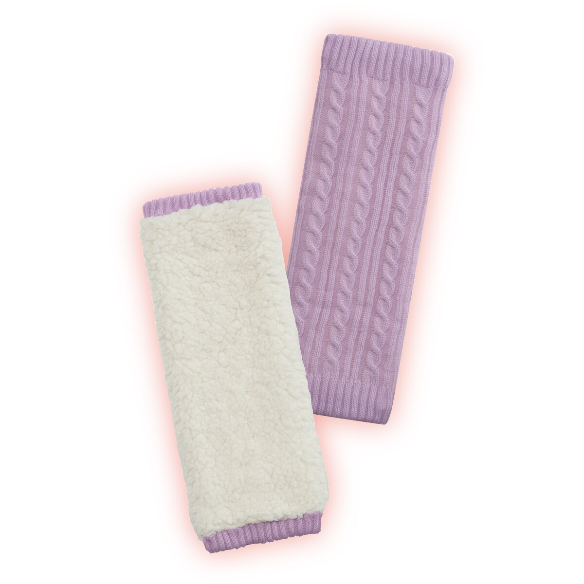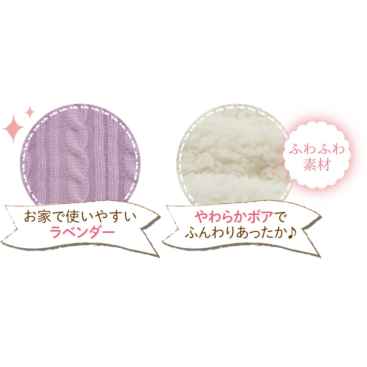 表側のニット素材はラベンダーカラー、裏側はふわふわボア素材。(ラベンダー生地拡大)