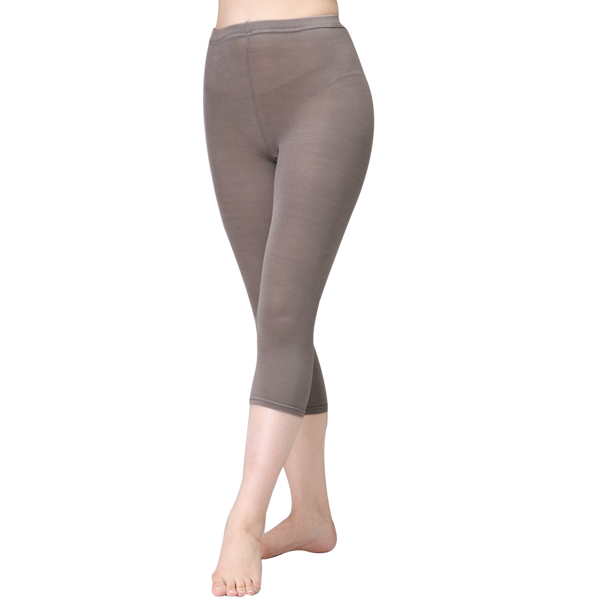 シルク混でソフトな肌触りの、のびのびスパッツ(7分丈)。グレー