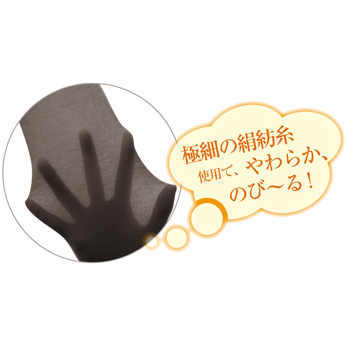 シルク混素材ならではのやさしい肌触りの日本製のびのびスパッツ。薄手でアウターにもひびきにくく、季節を問わず着用いただけます。伸縮性に優れ締め付けにくく、ウエスト総ゴム仕様・後ろマチ付きで、ゆったりとした履き心地です。