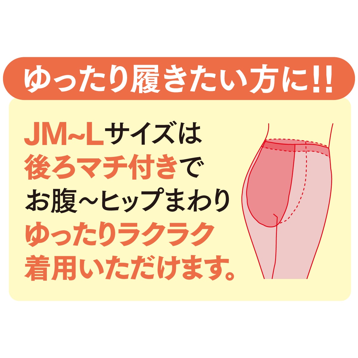 お腹からヒップまわりゆったりサイズ。
