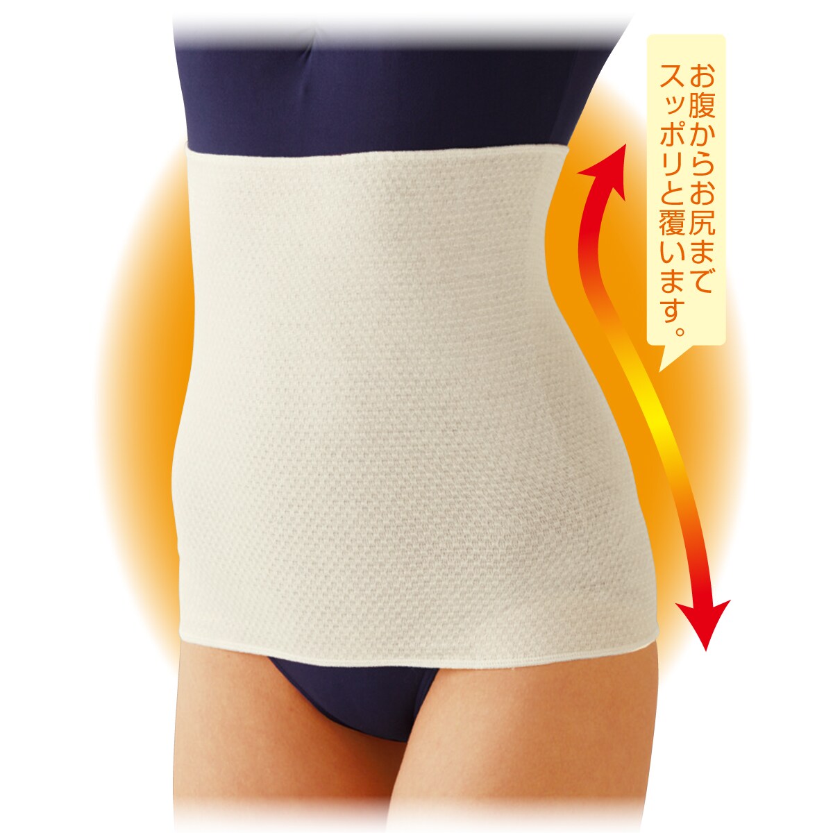 お腹からお尻まですっぽりと覆います。