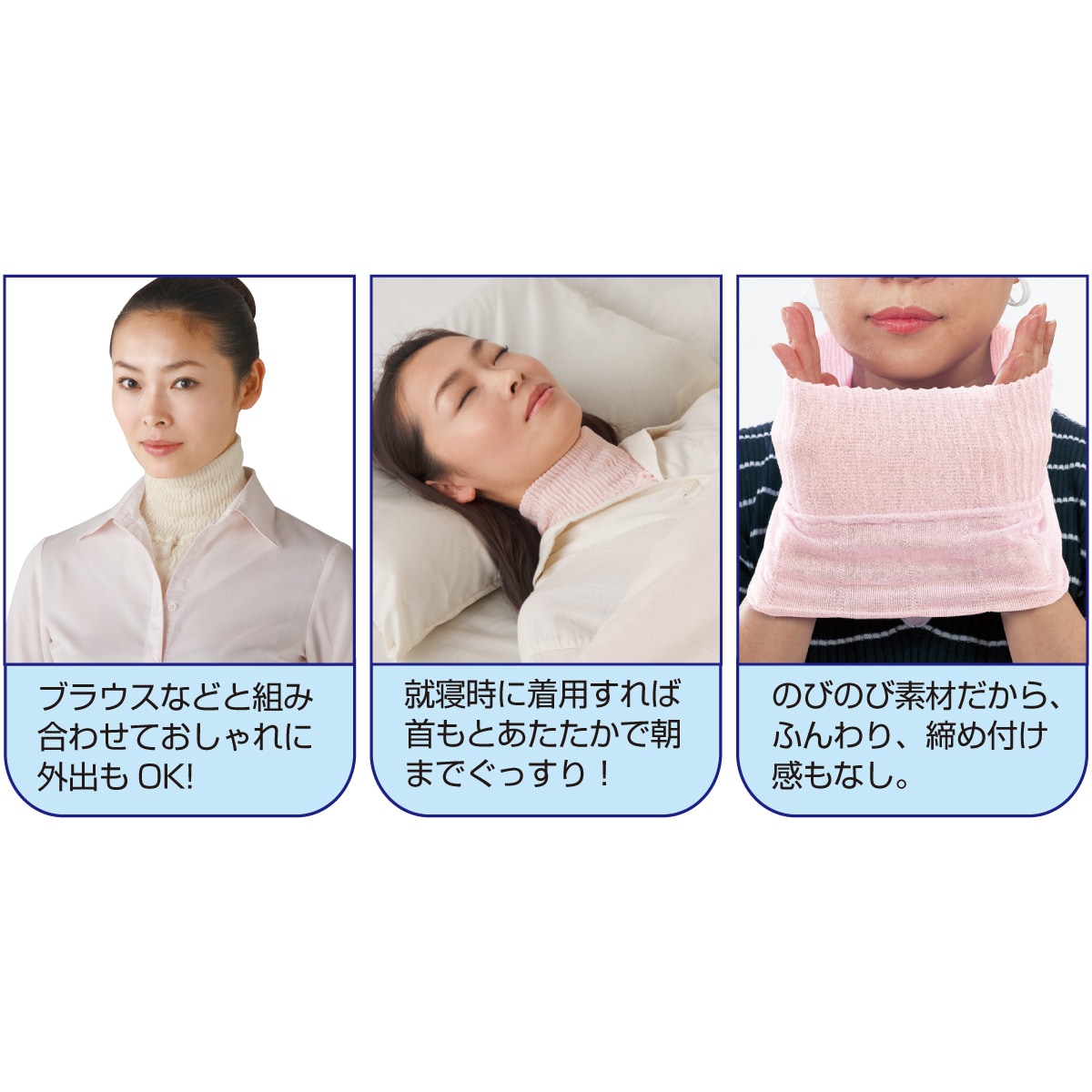 首すじをさっとカバー。睡眠中の冷え対策にも。気になるときに簡単にお使いいただけます。