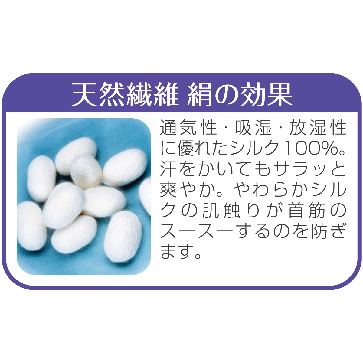 通気性・吸湿・放湿性に優れたシルク100%の衿もとカバー。のびのび素材で、ふんわり締め付け感なく着用いただけます。首すじの冷え対策や、気になる年齢サインのカバーにも。おやすみ時にも、またアウターと組み合わせてなど、幅広くお使いいただけます。