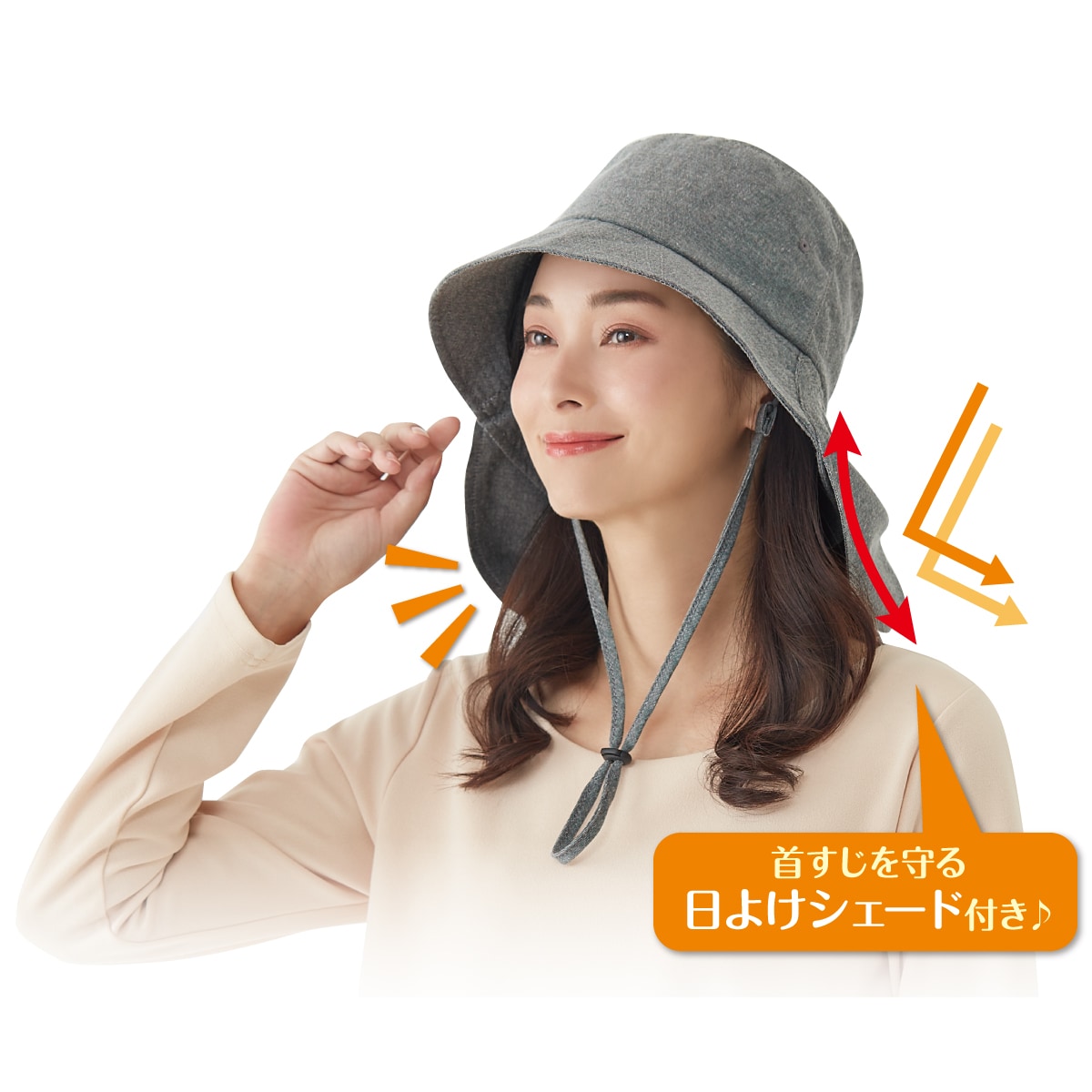 首すじを守る日よけシェードでしっかりカバーできます。