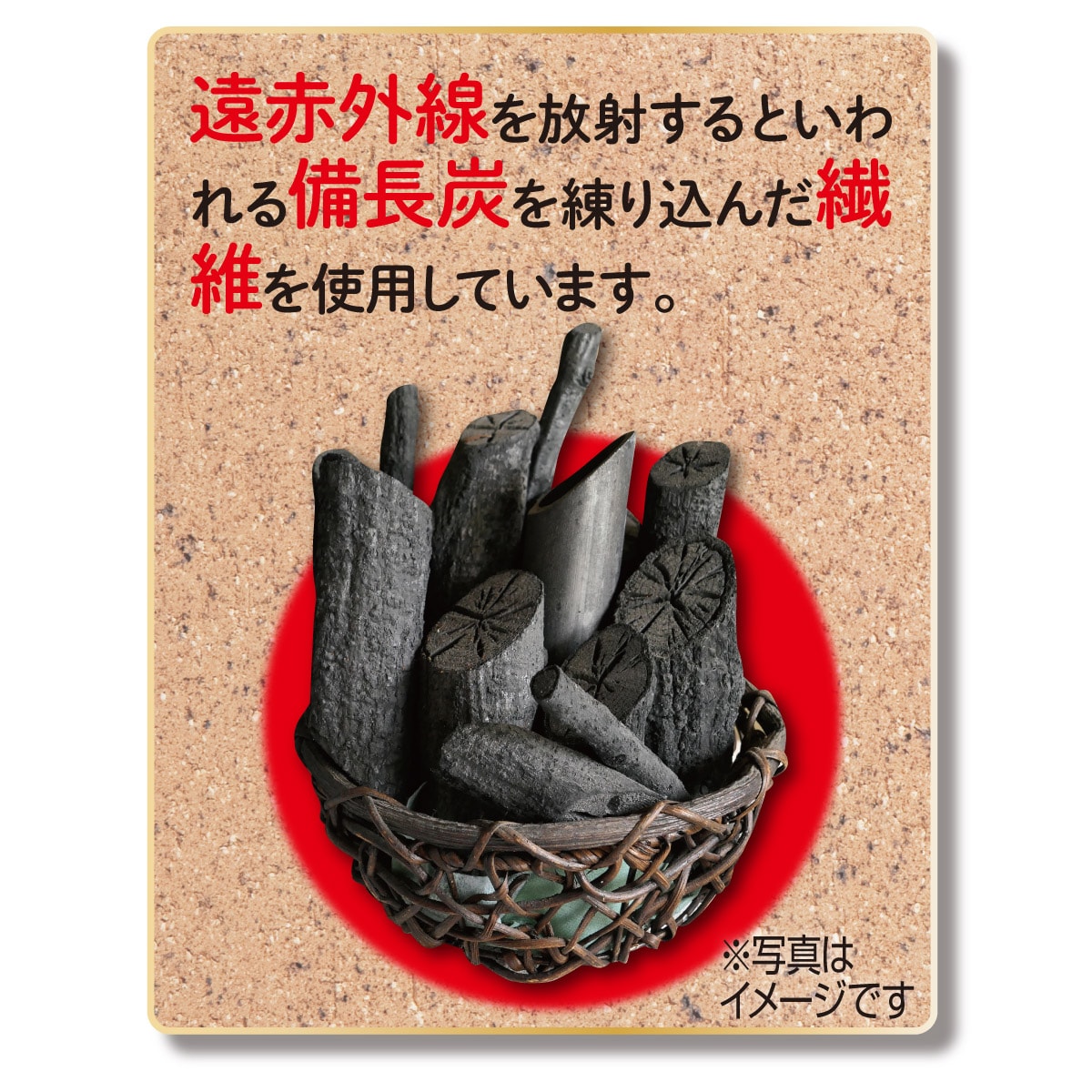 備長炭の練り込み繊維を使用し、お腹をあったかサポート。