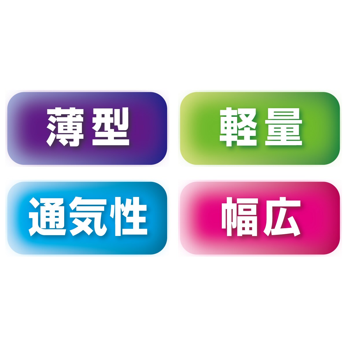 薄型&軽量、通気性がよく快適、しっかりサポートする幅広タイプ。