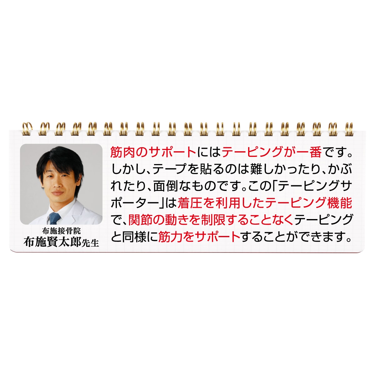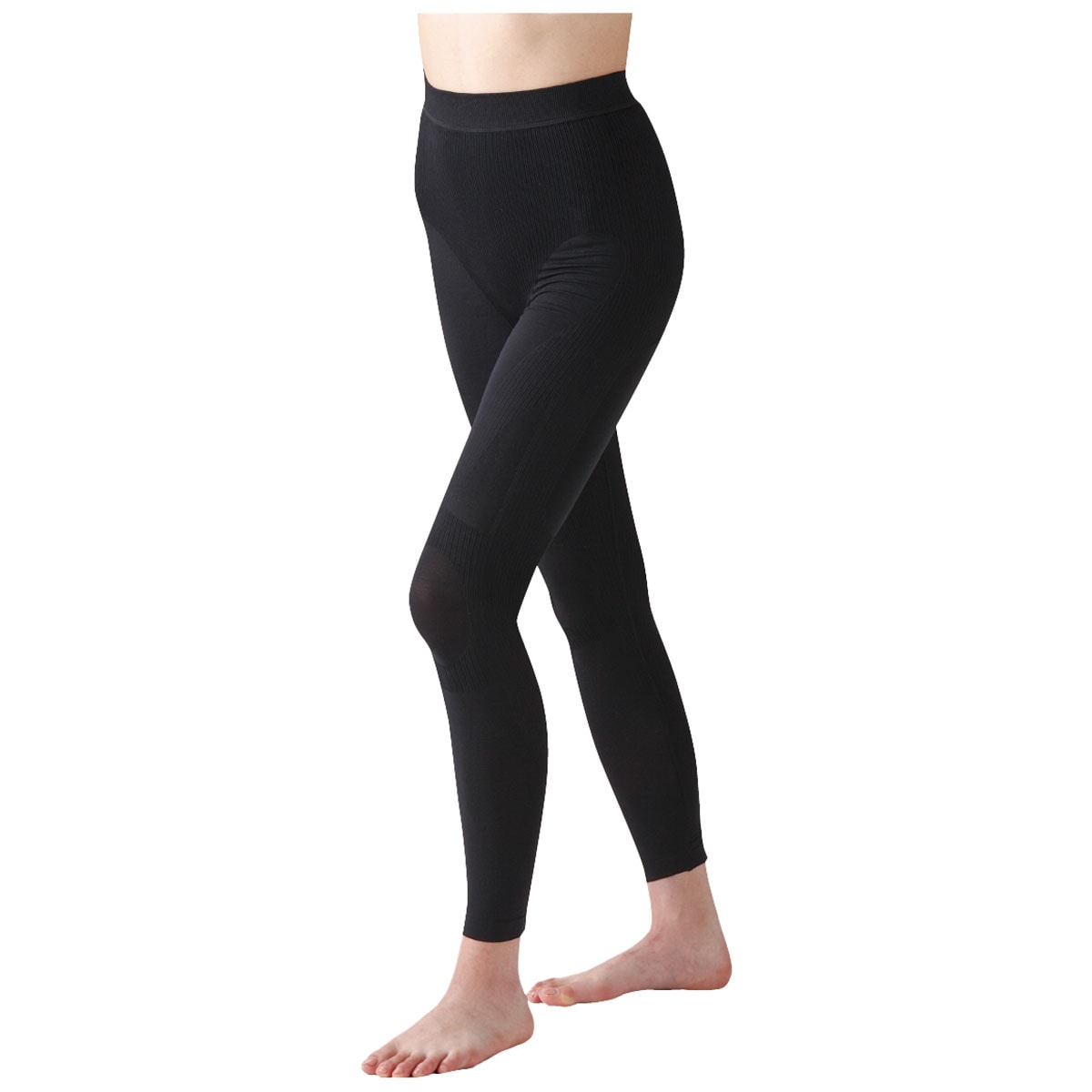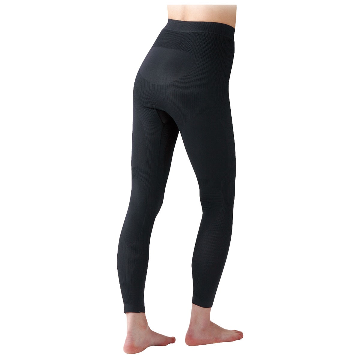 スパッツの各部分に編み方を変えたテーピング機能を施し、下半身の動きをしっかりサポート。テーピング機能により筋肉の動きを支えながら歩けるので、普段動かしくい部分をサポートしてくれます。薄手でアウターにひびきにくく年中着用していただけます。