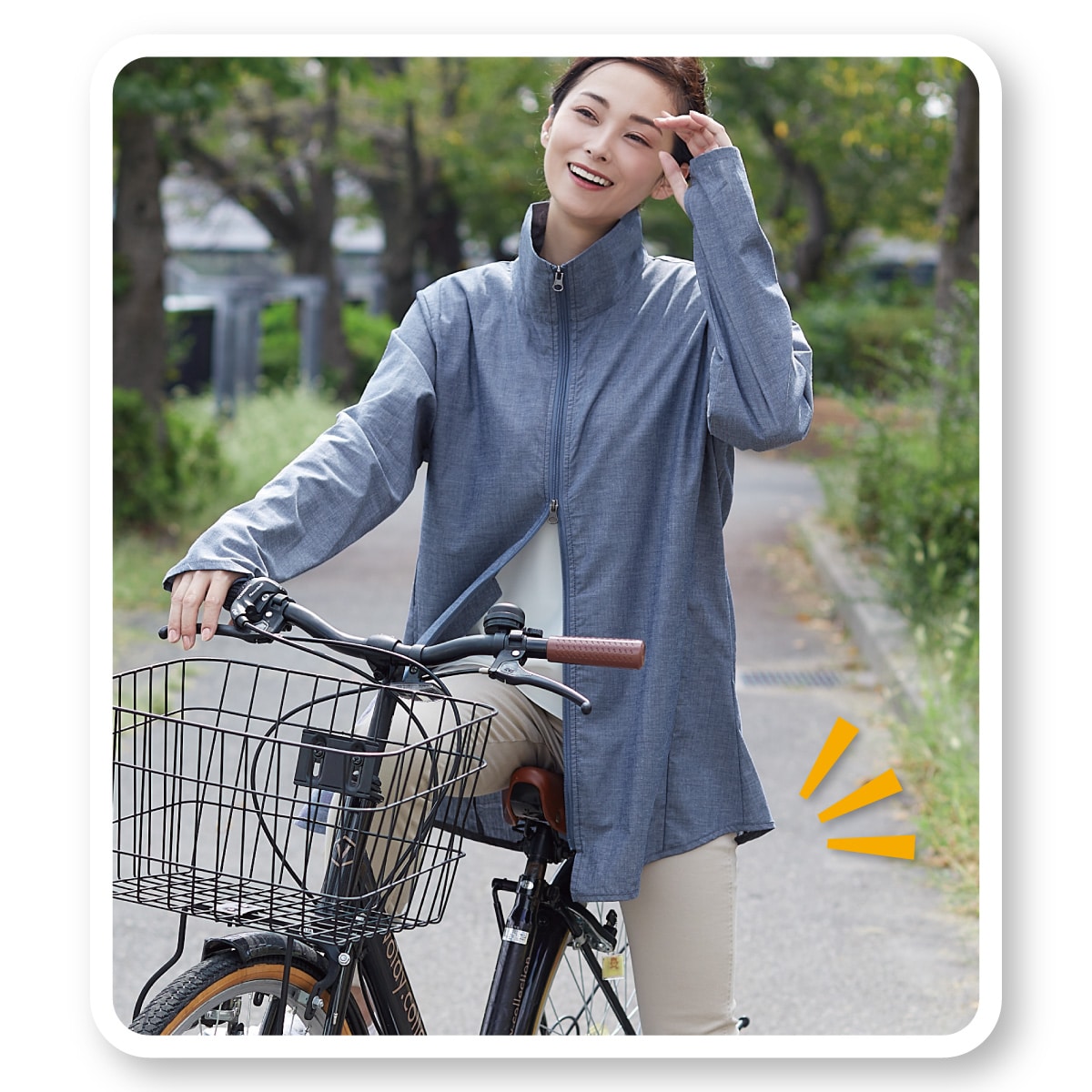 • 日差しからお肌を守るロングブルゾン<br>ファスナーが裾からも開くので動きやすい!