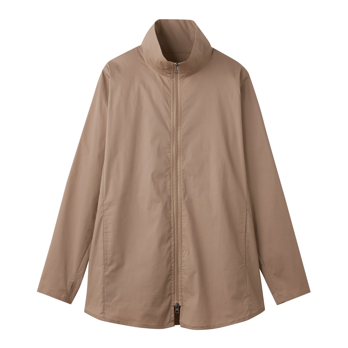 季節の変わり目や日差しが気になる季節におすすめのブルゾンです。高めのスタンド衿で首周りをカバー、袖口は親指が通せて手の甲もカバー。ロング丈でありながら下からも開くファスナーで動きも邪魔しません。