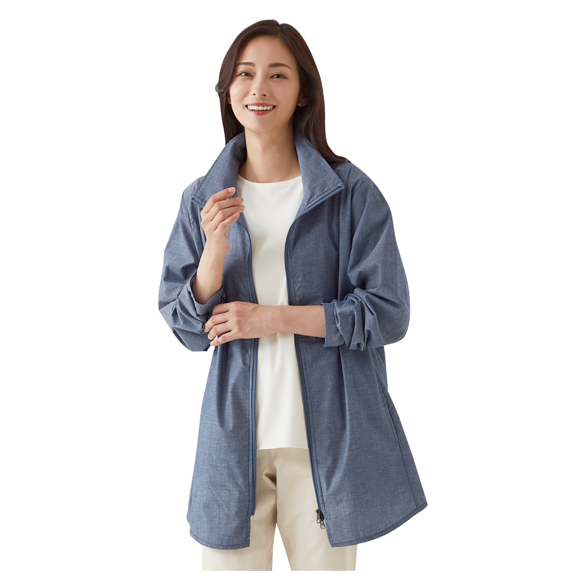 【ネット限定】首をしっかりカバーするUVカットロングブルゾン